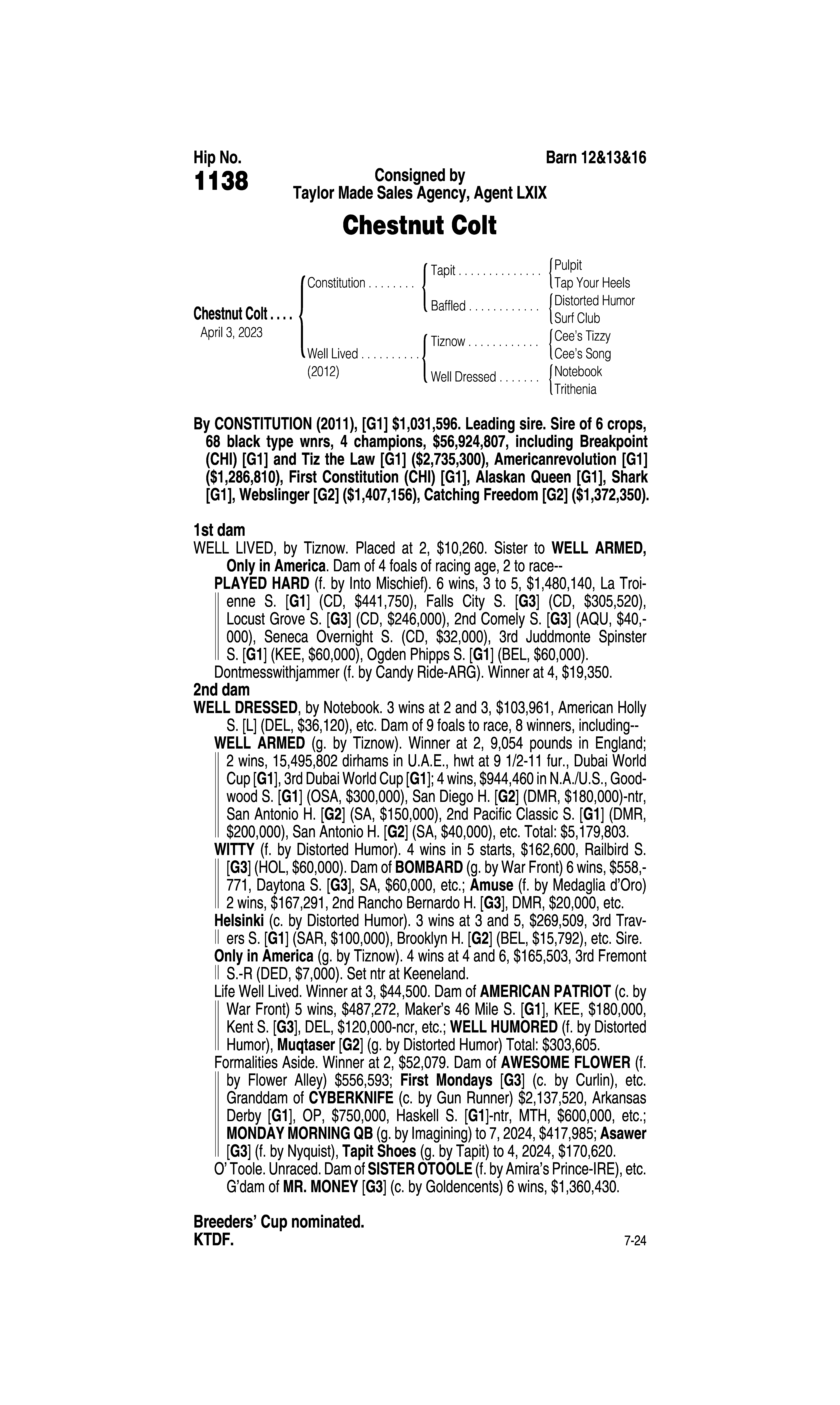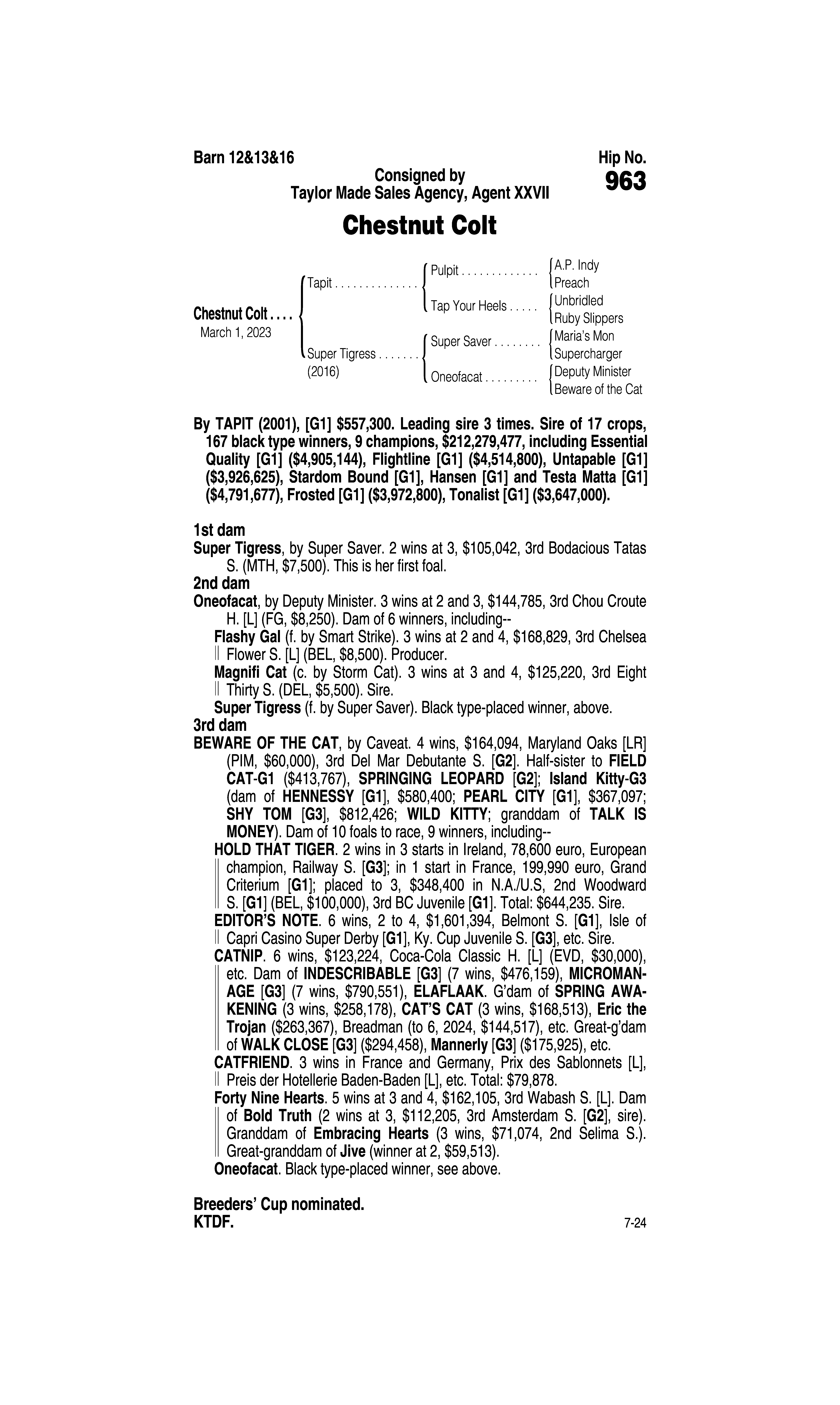 Sire: Tom's d'Etat