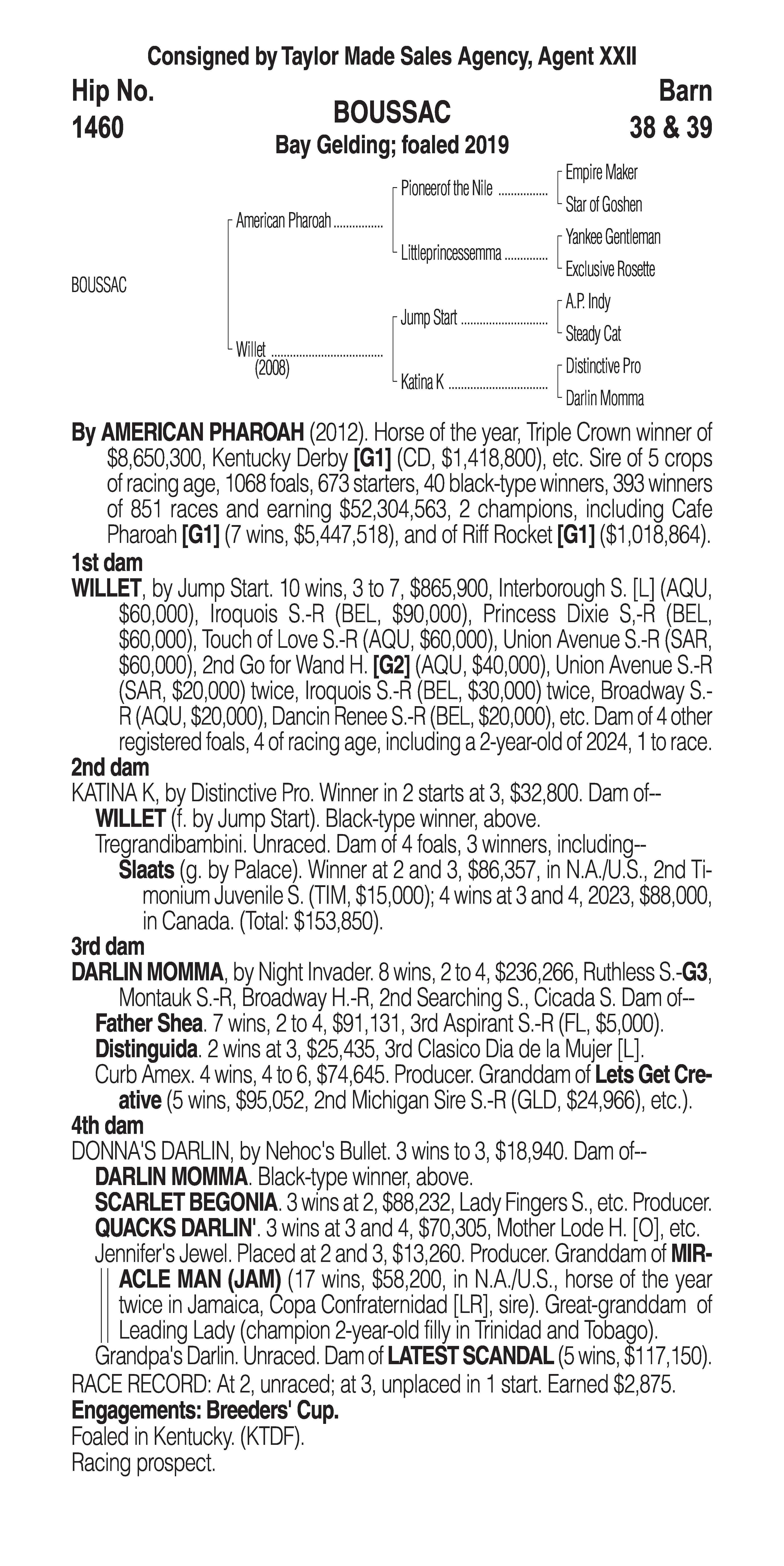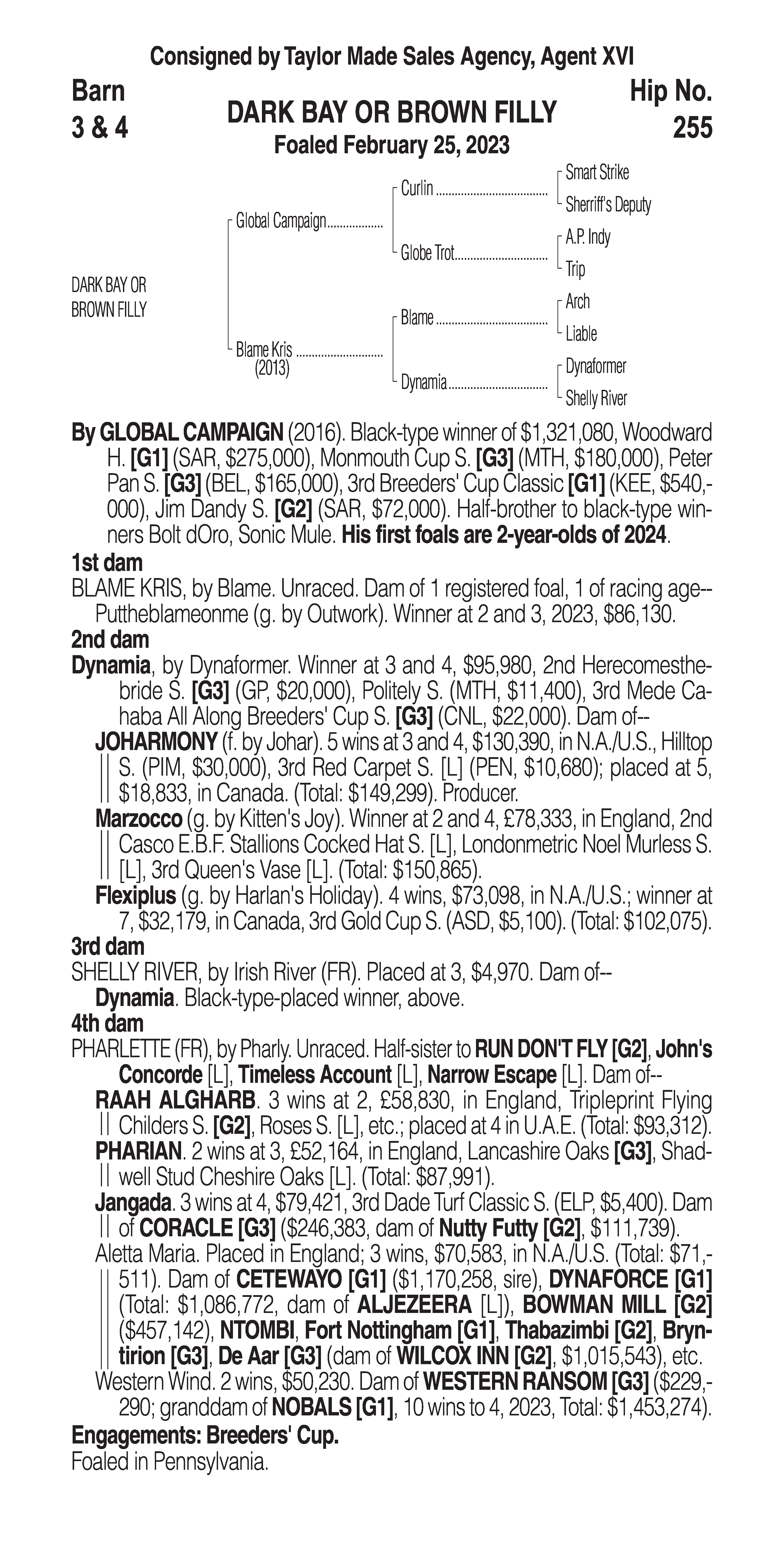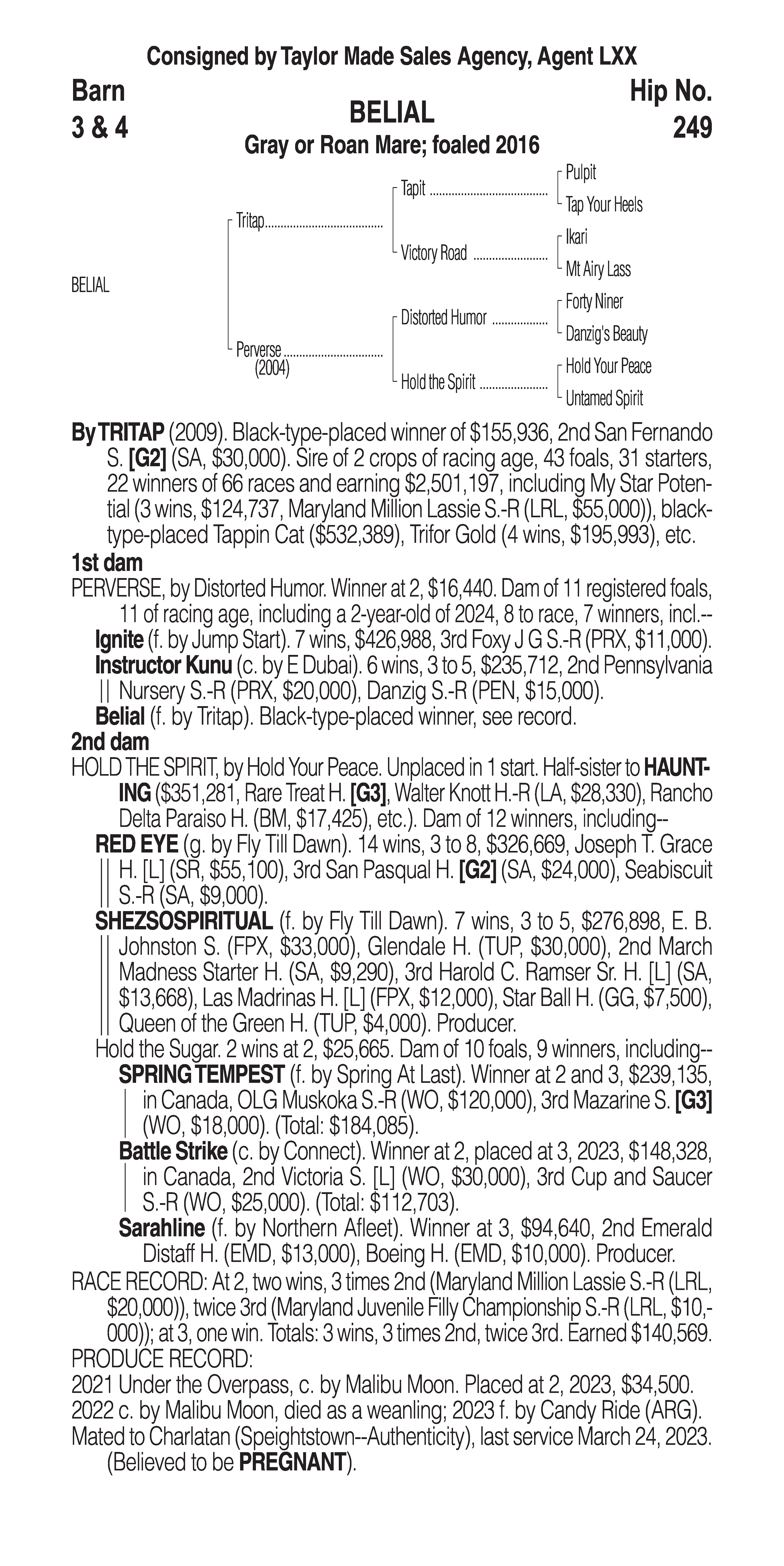 Type: Racing or Broodmare Prospect