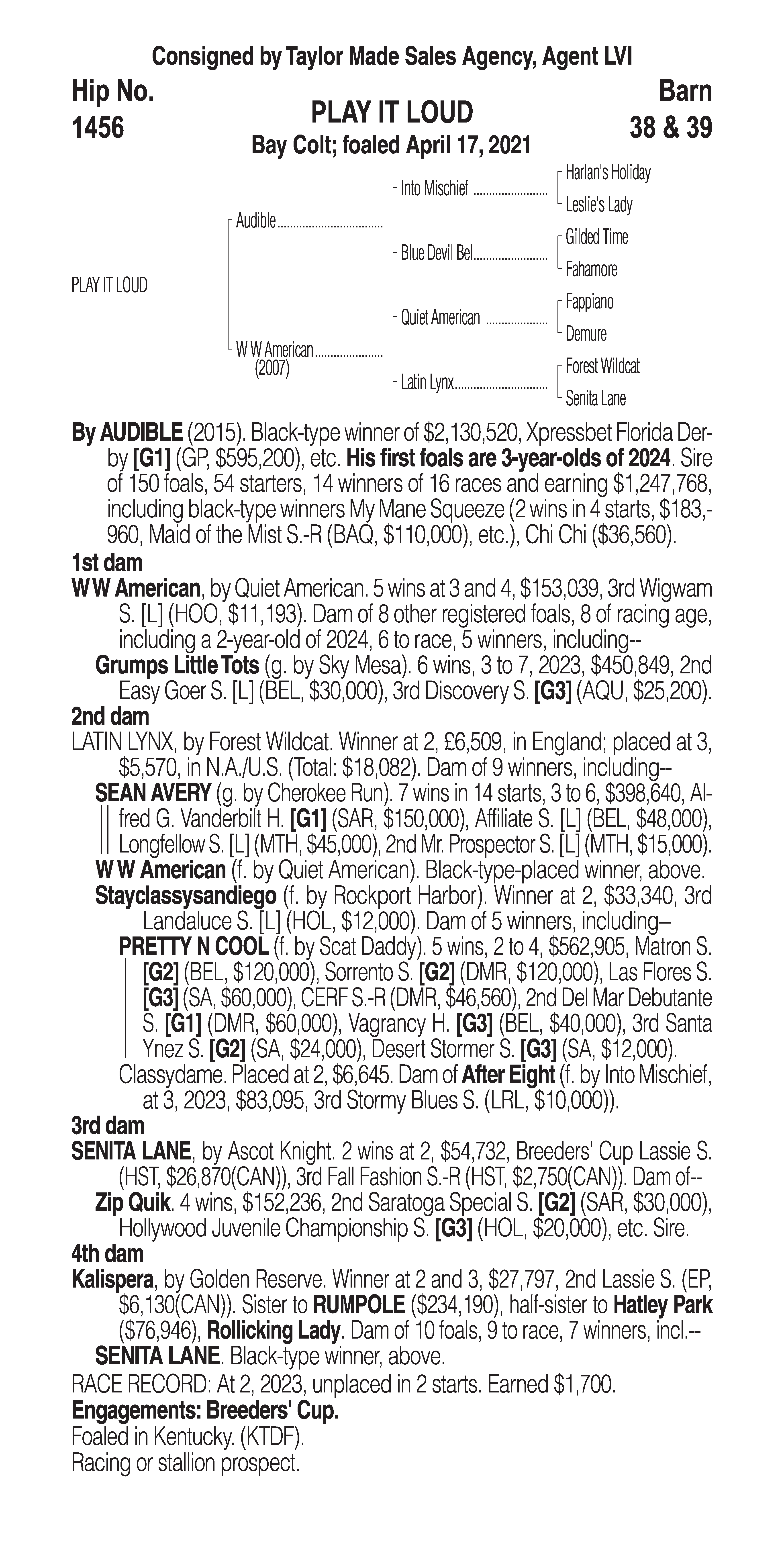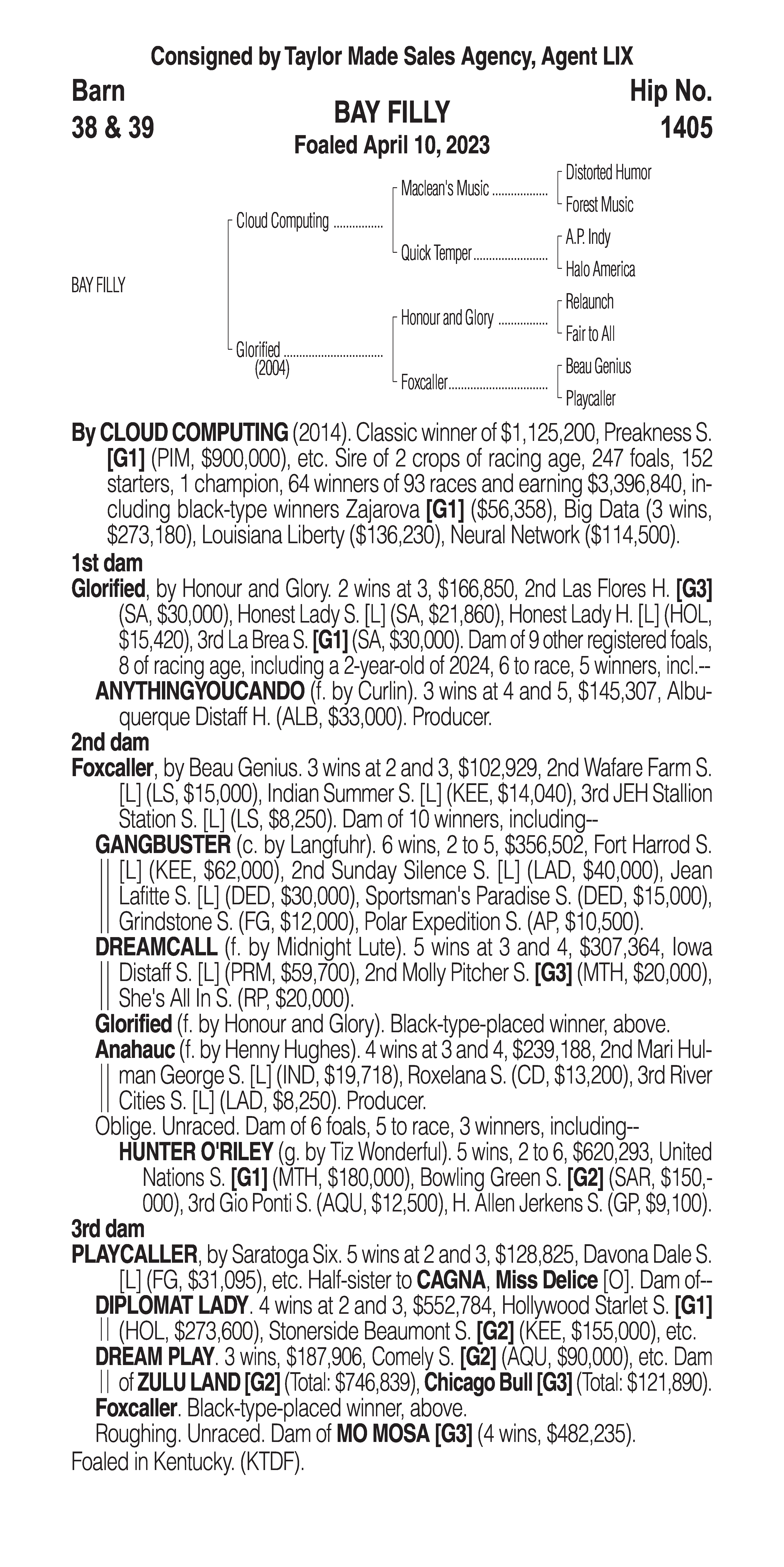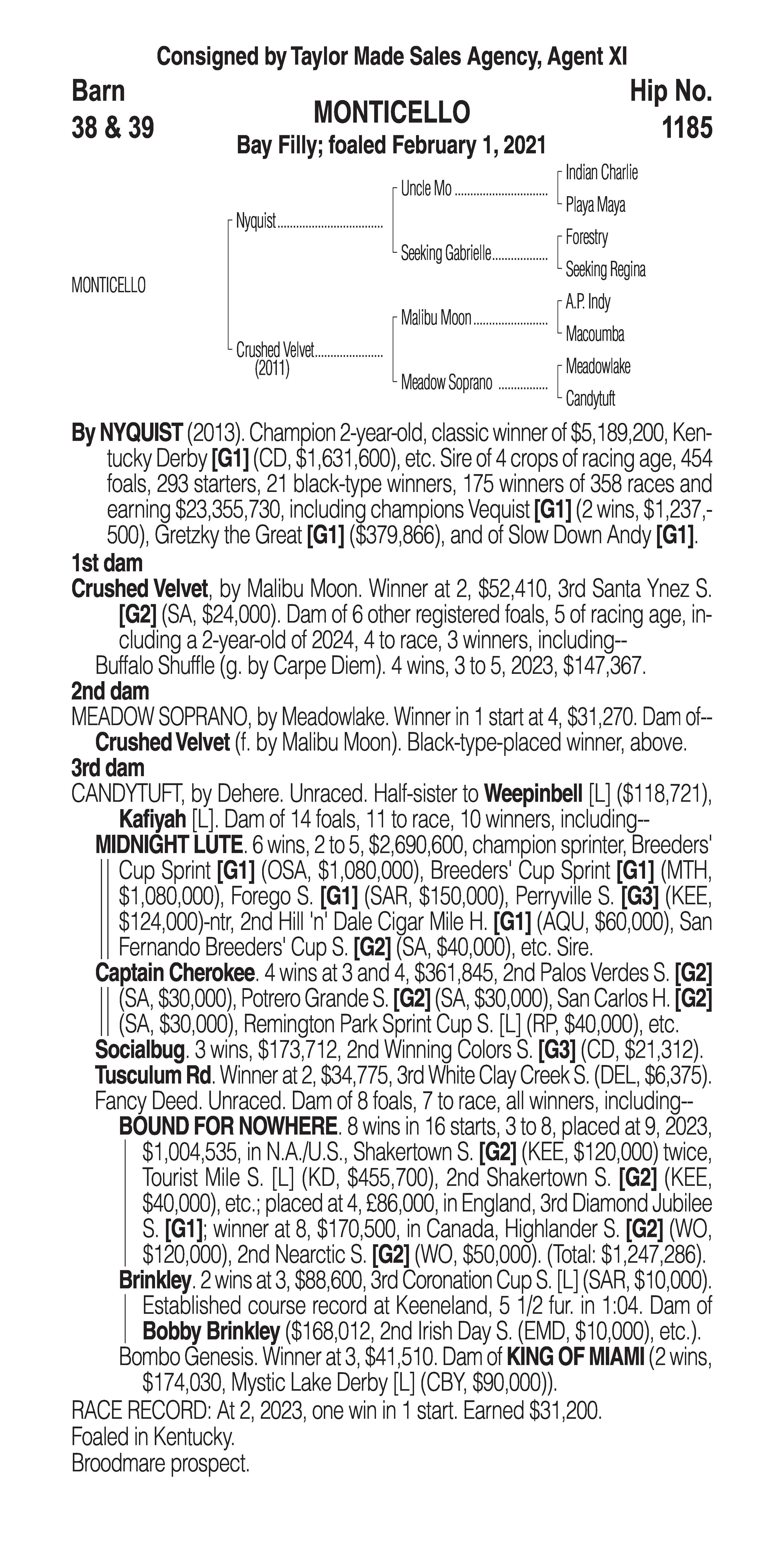 Type: Racing or Broodmare Prospect