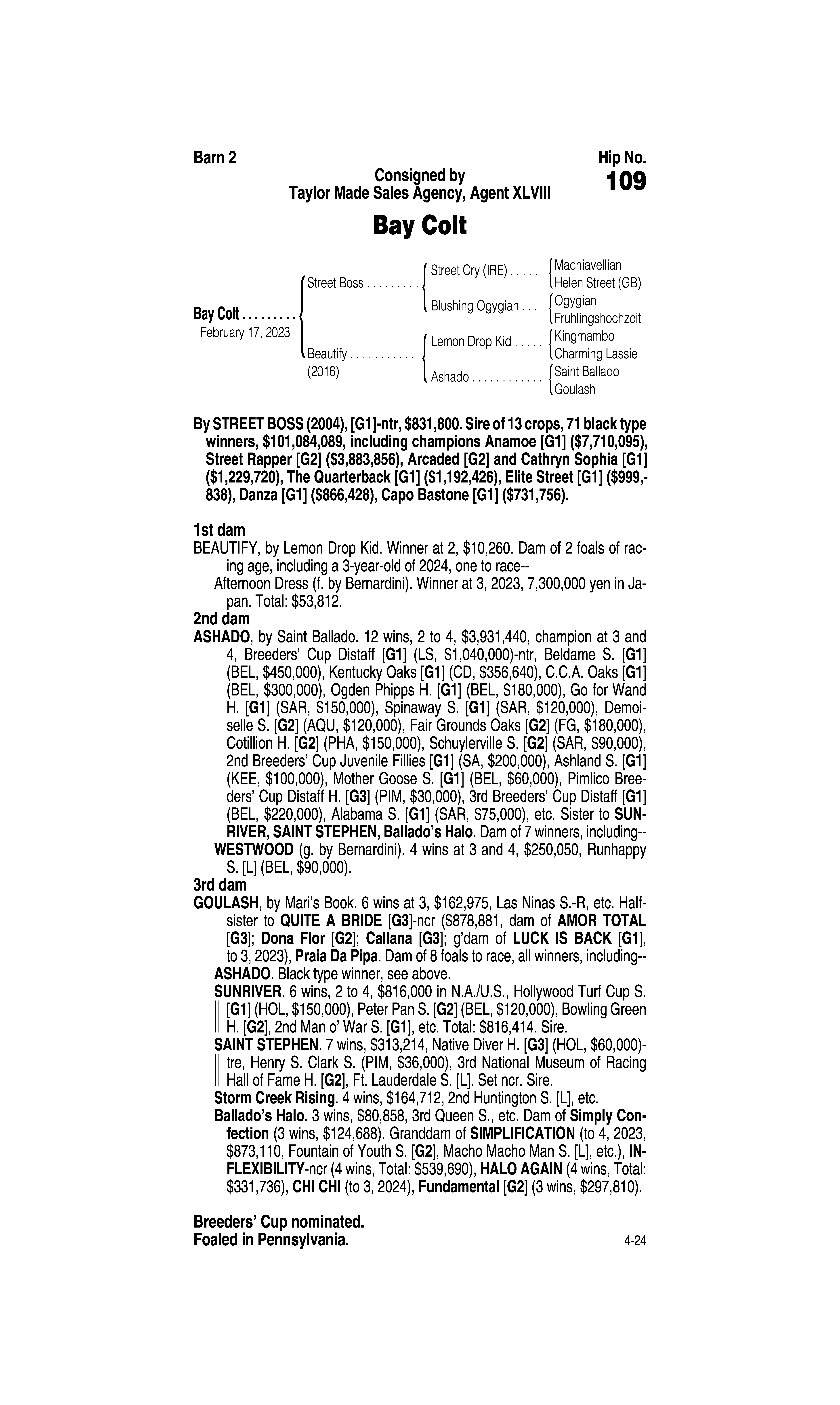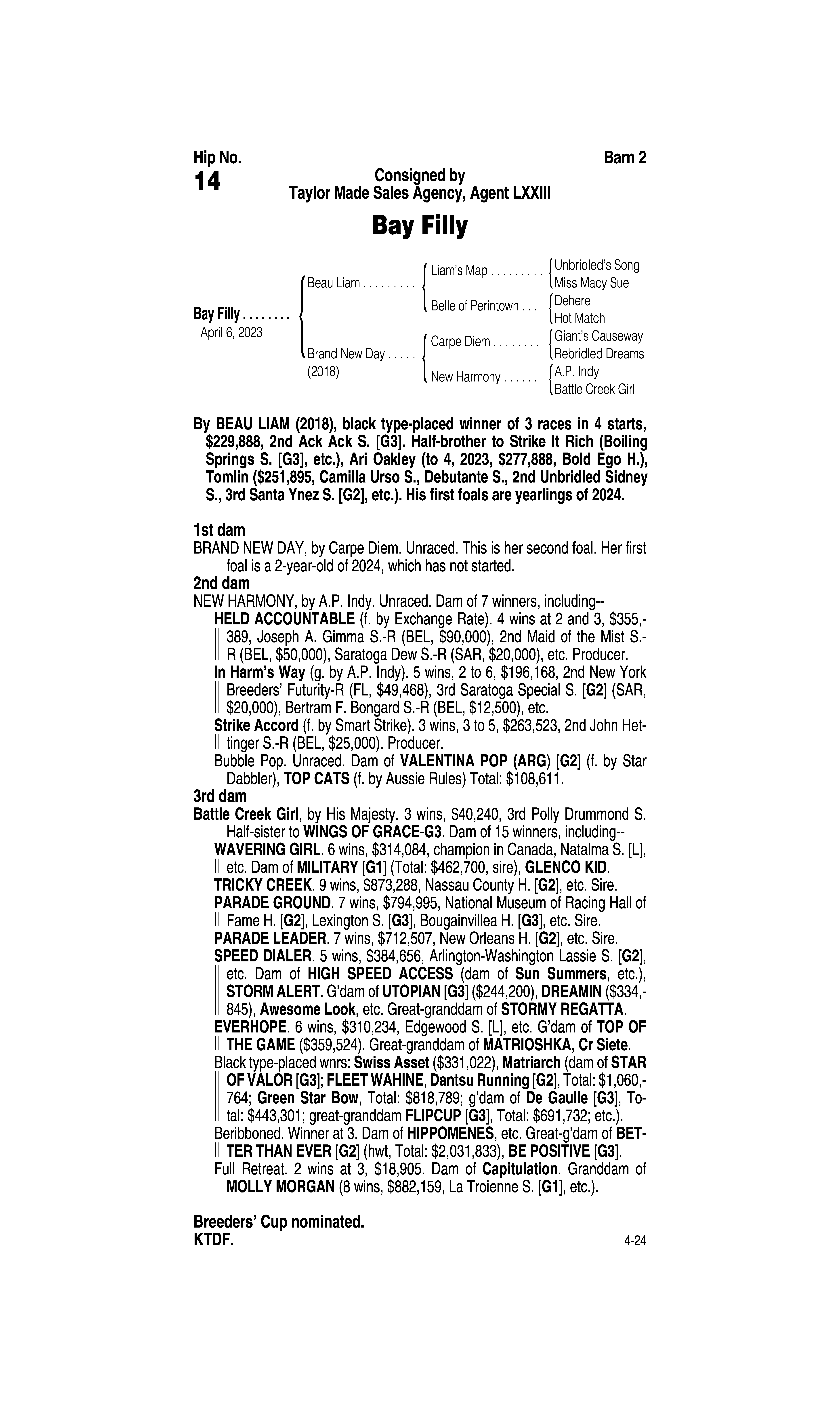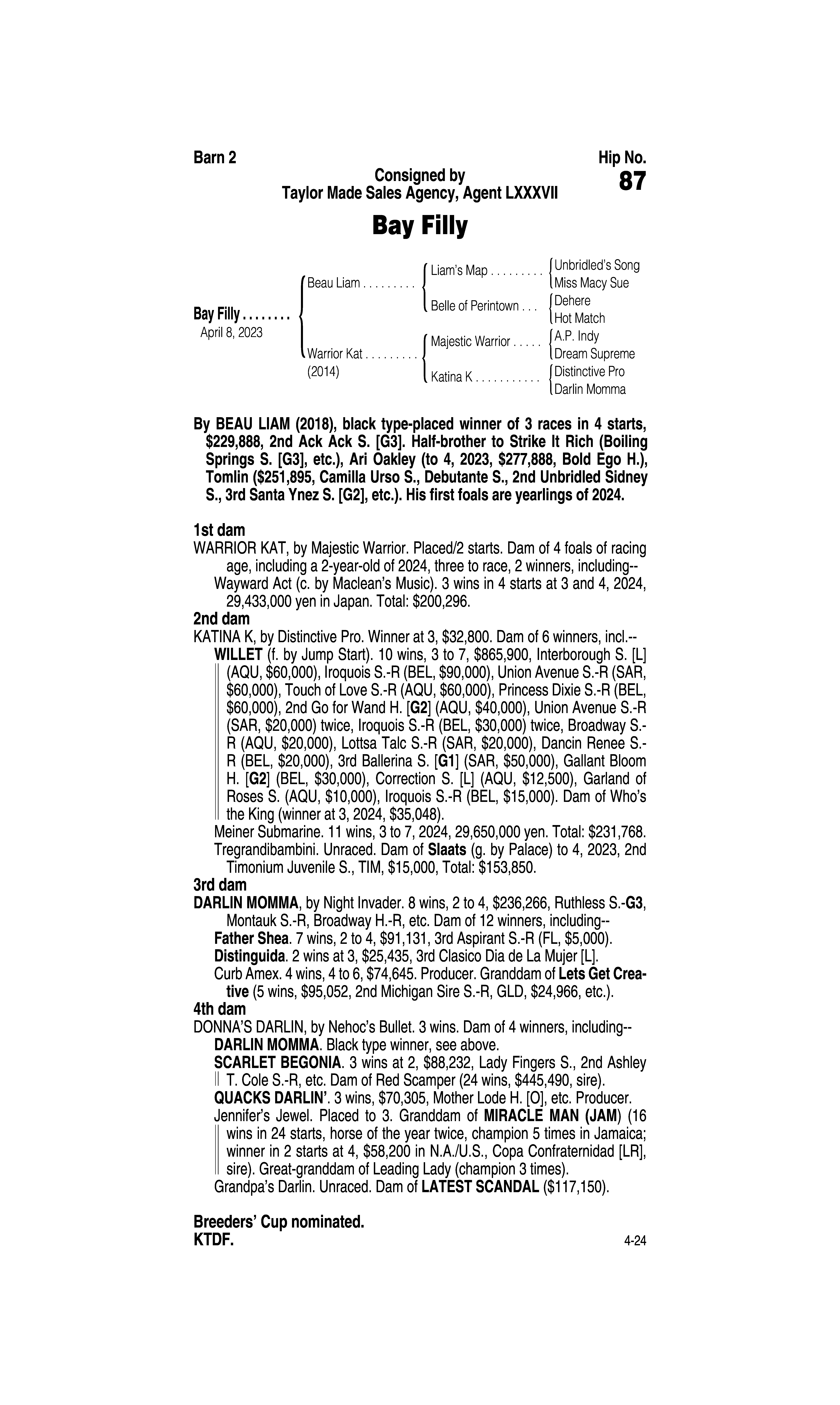 Sire: Beau Liam