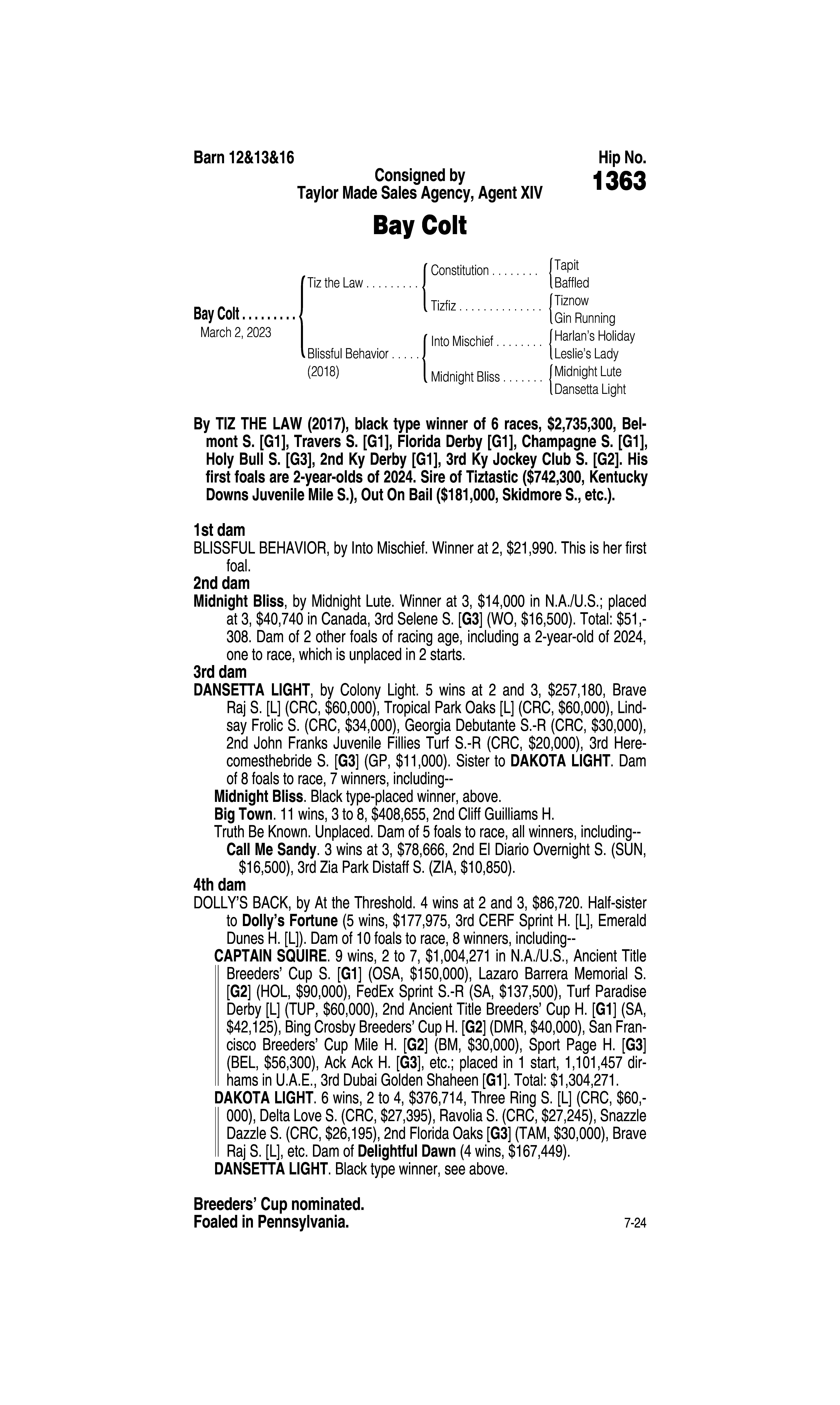 Sire: Tom's d'Etat