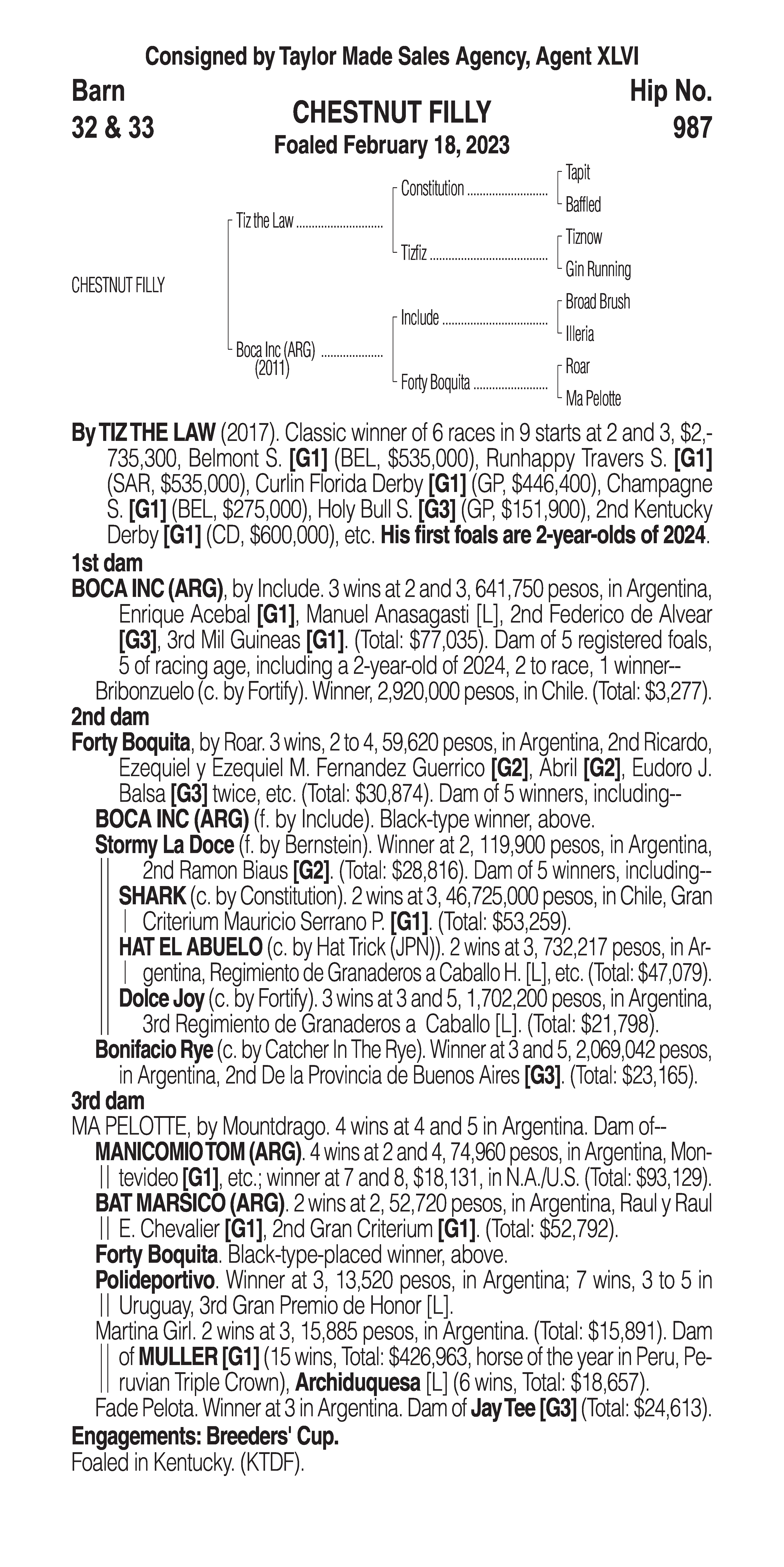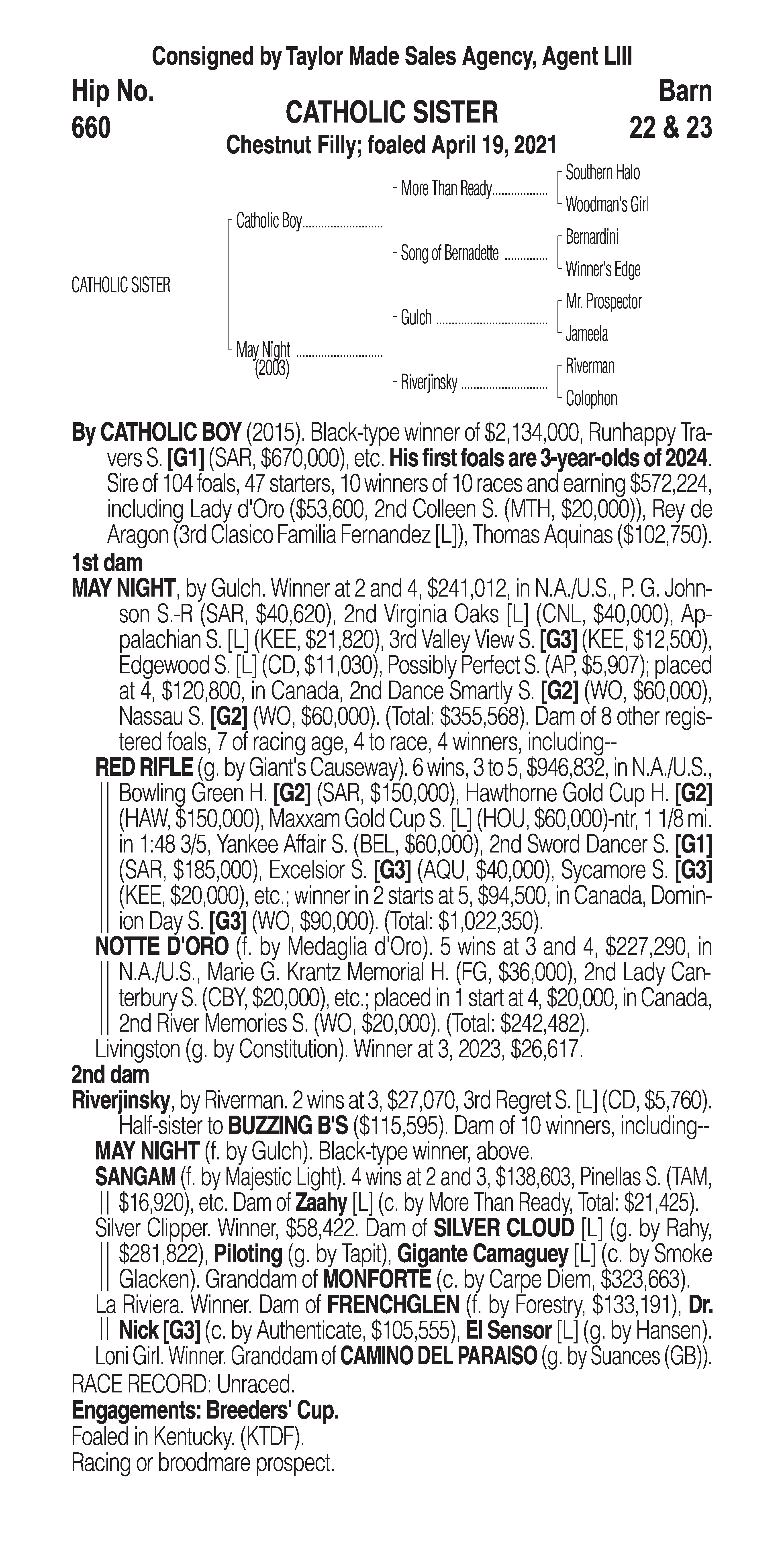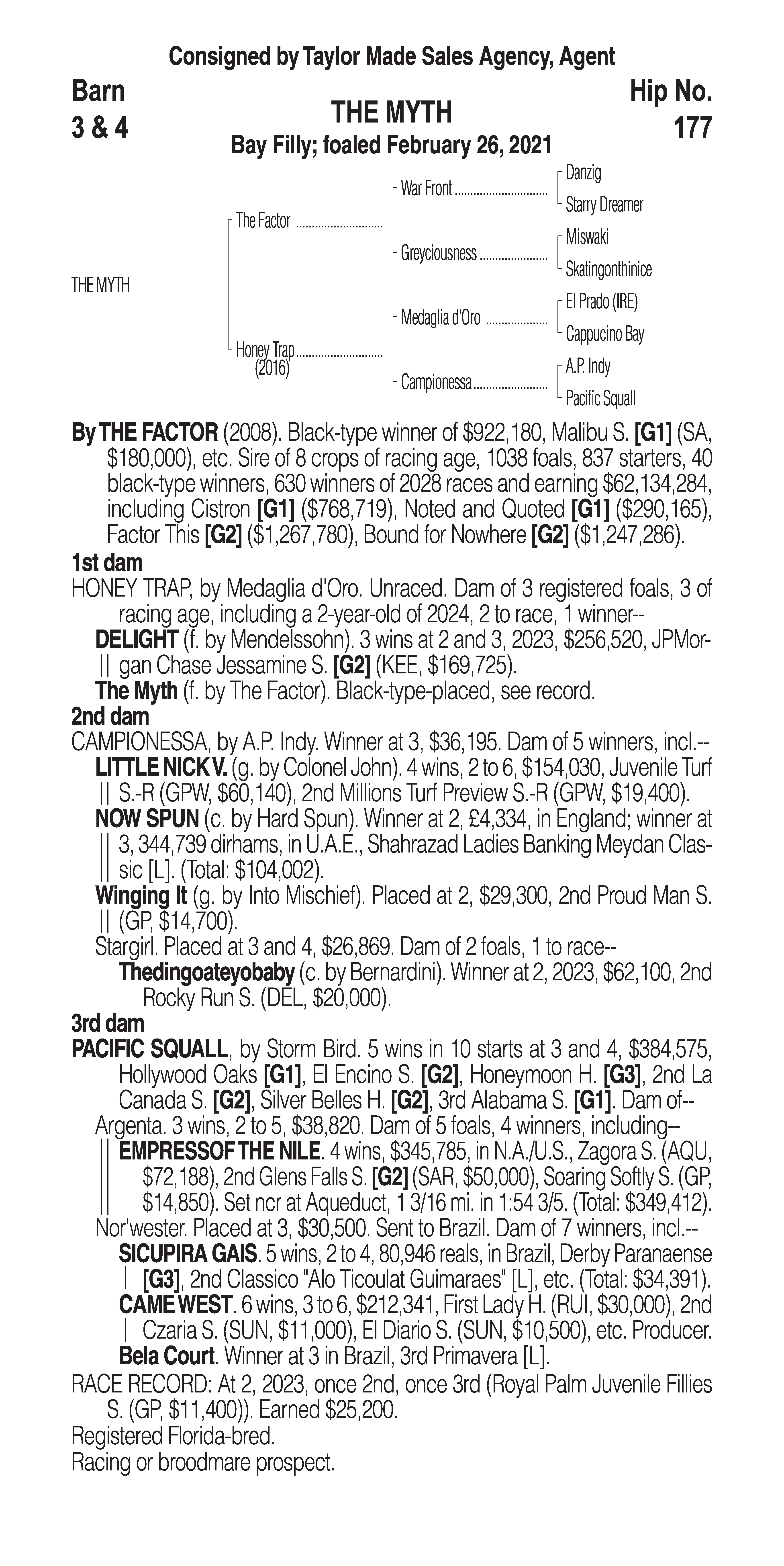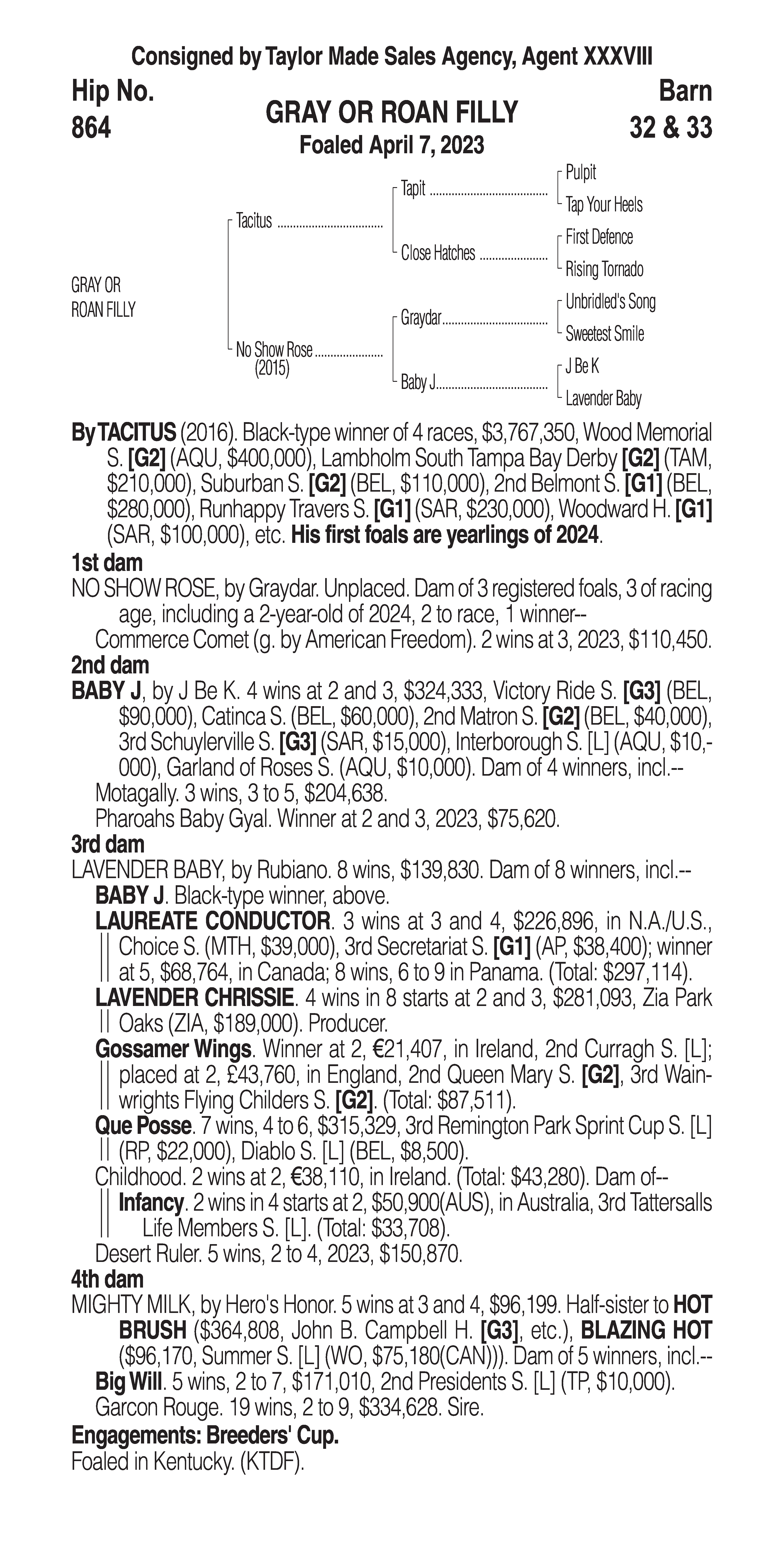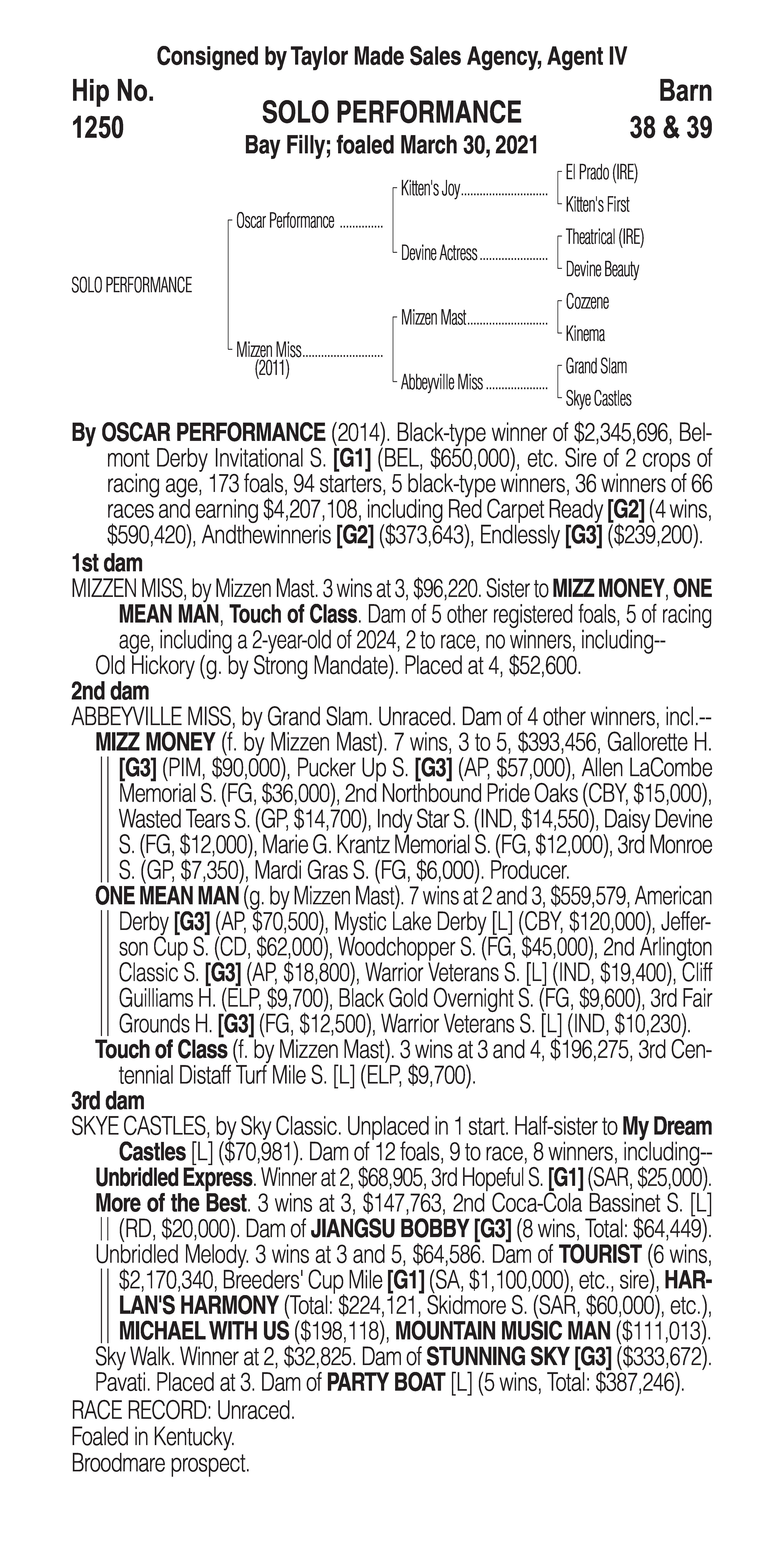 Type: Racing or Broodmare Prospect