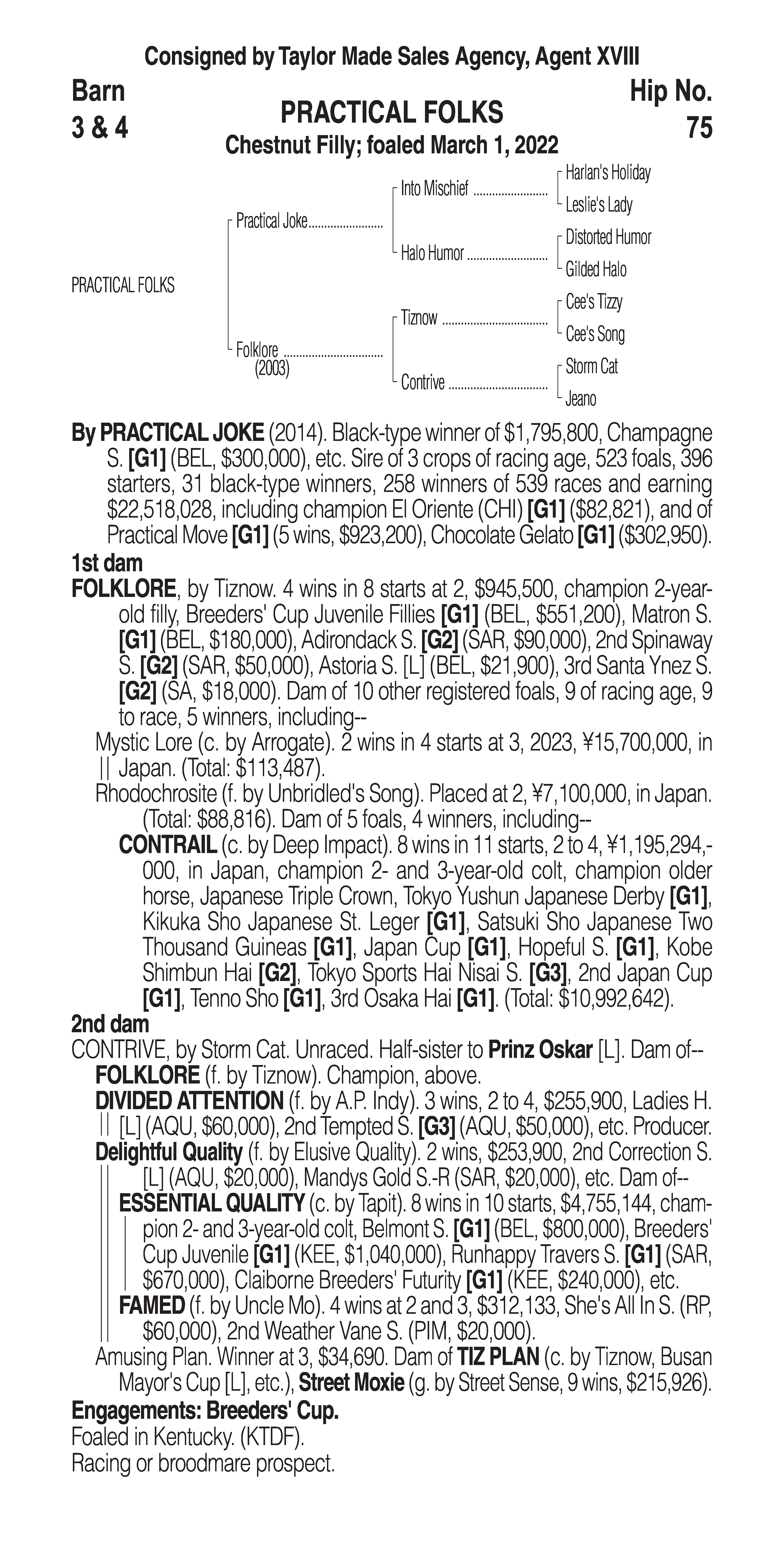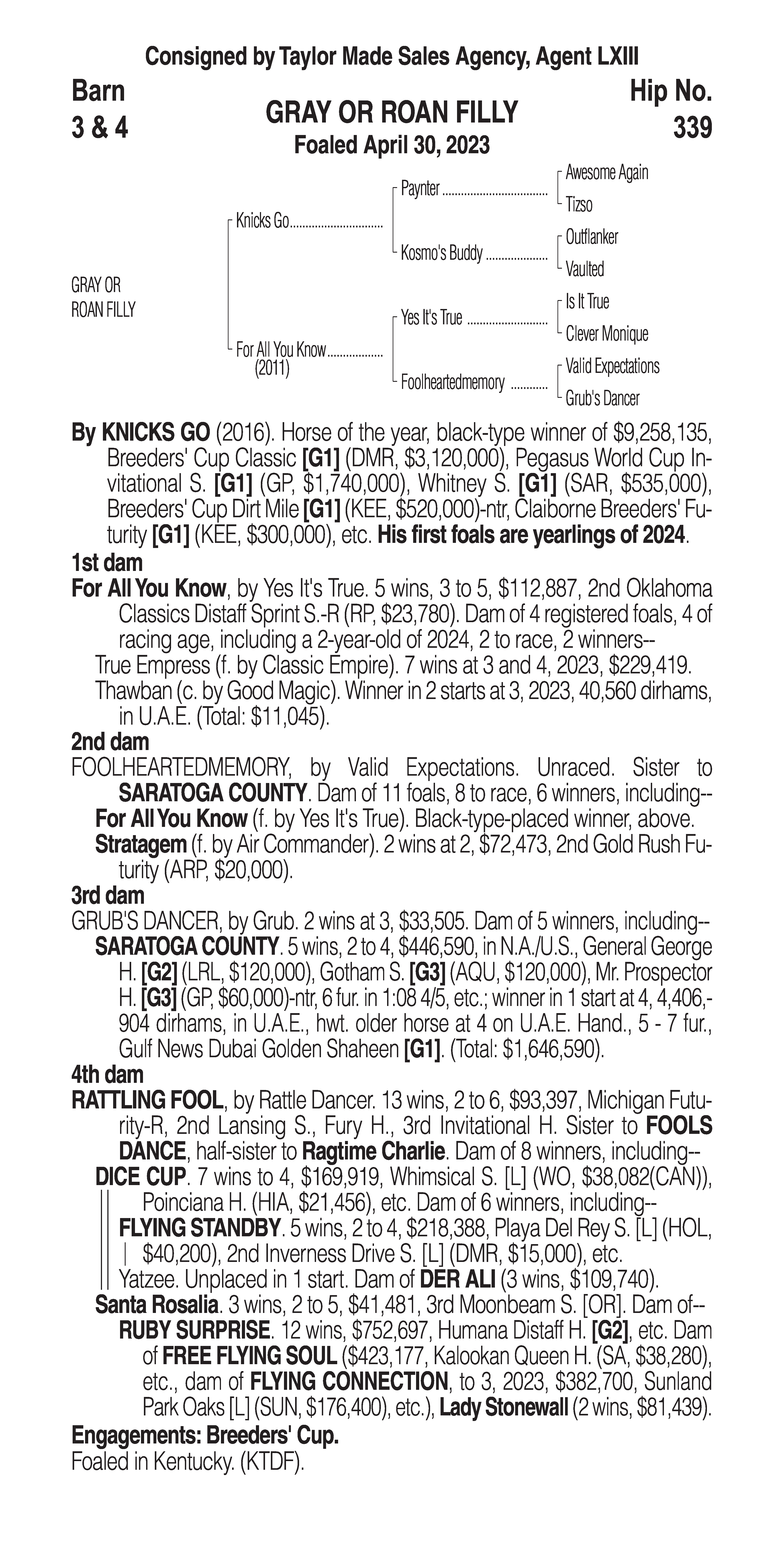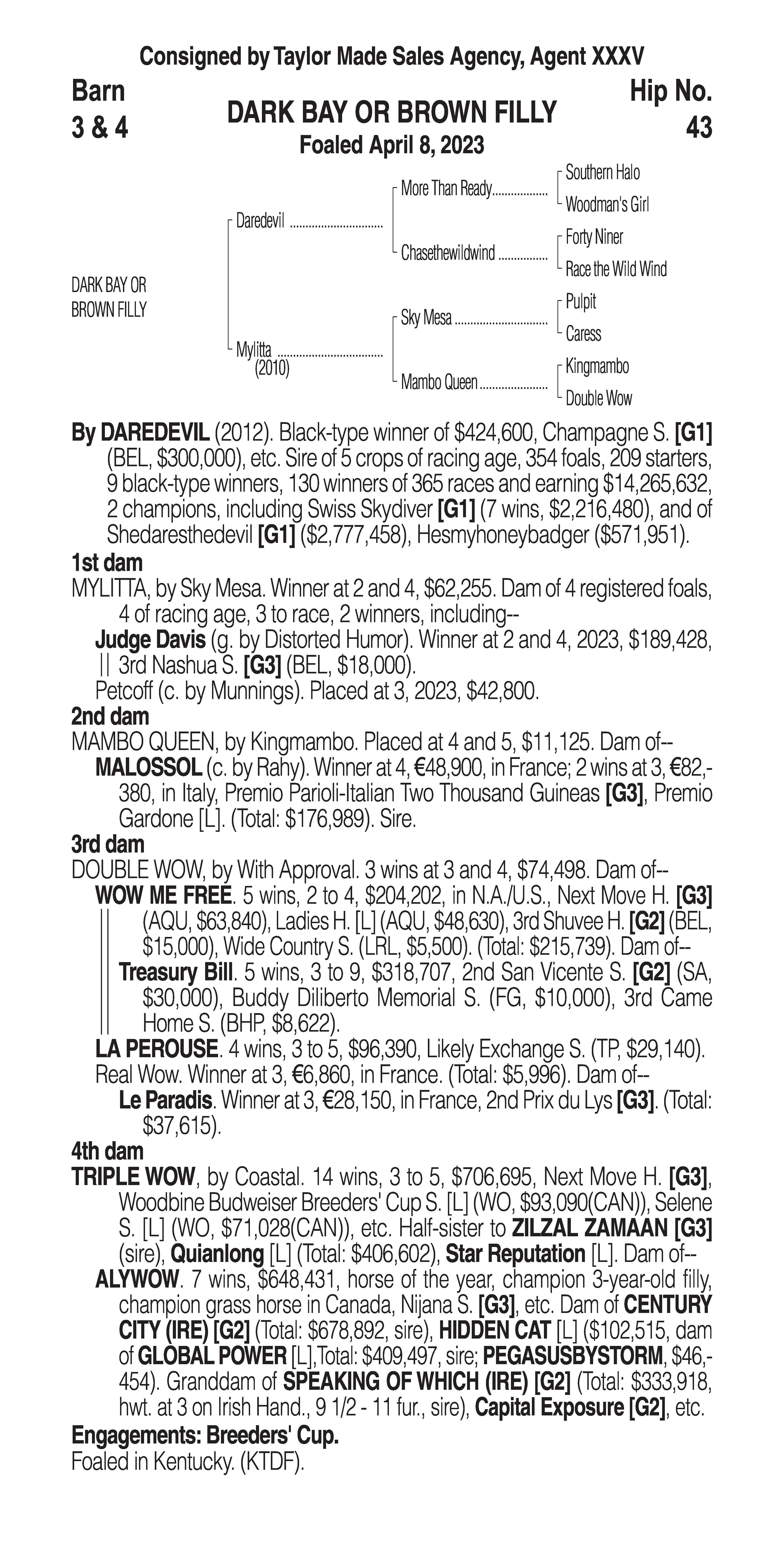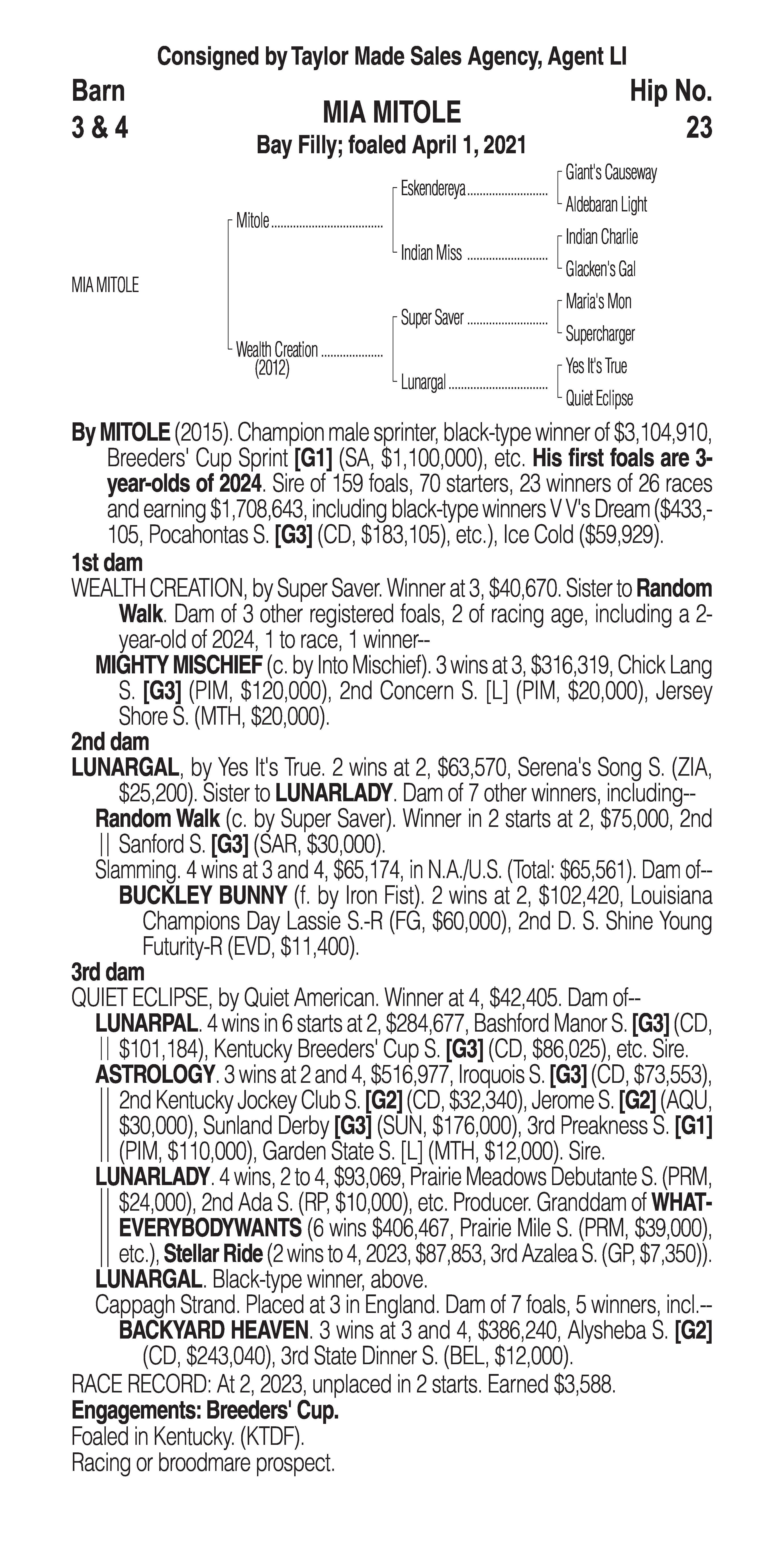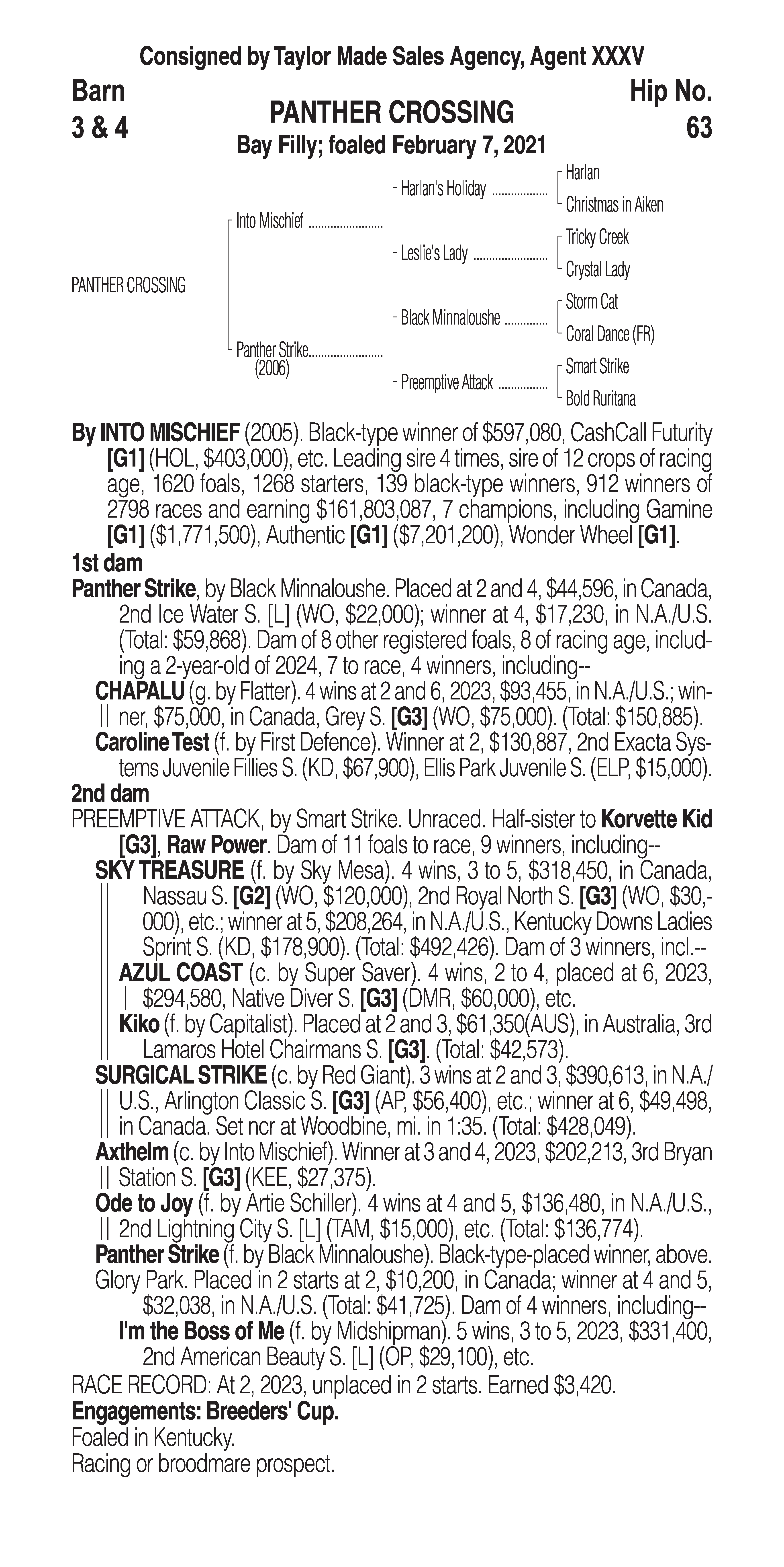 Type: Racing or Broodmare Prospect