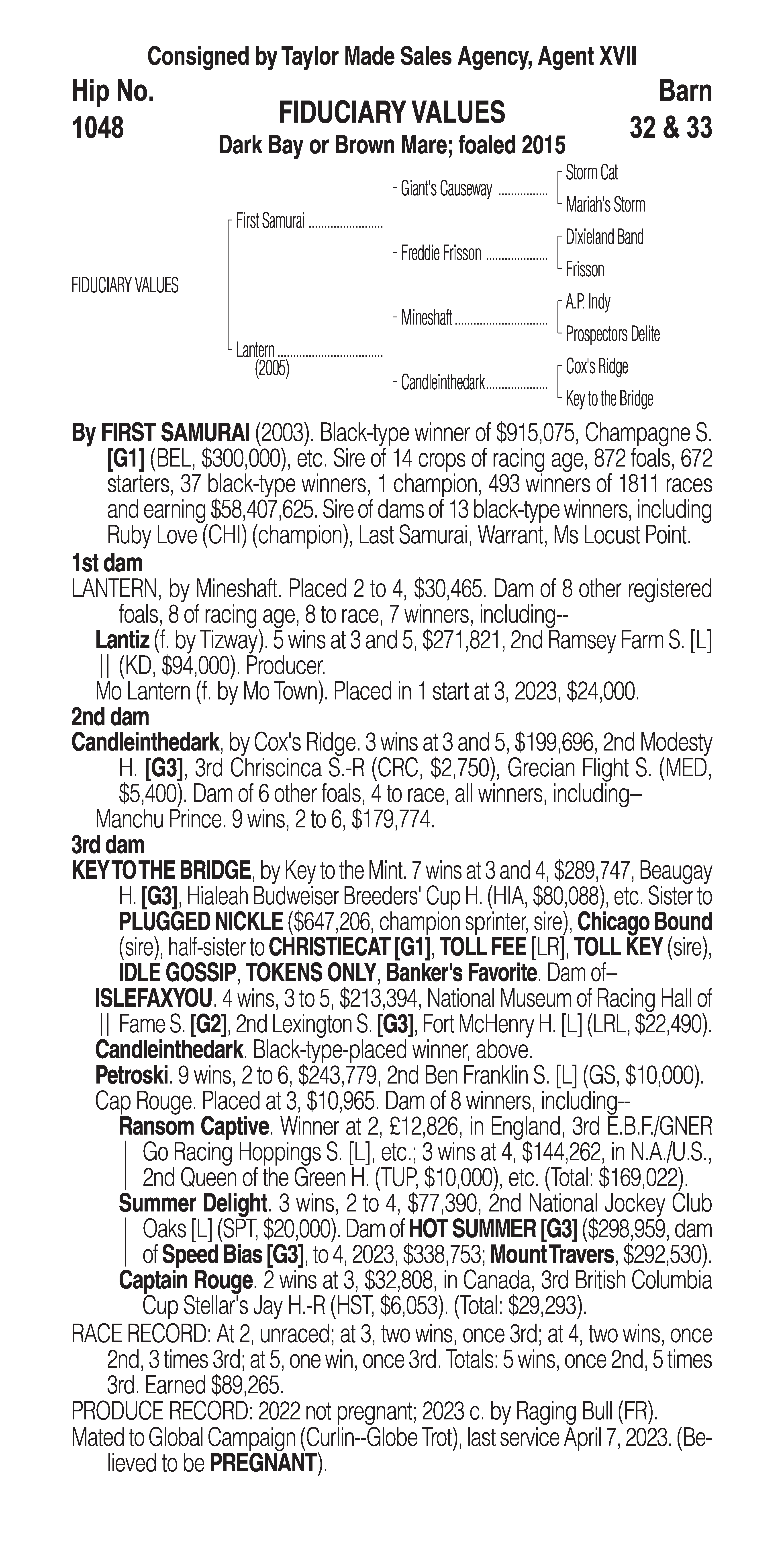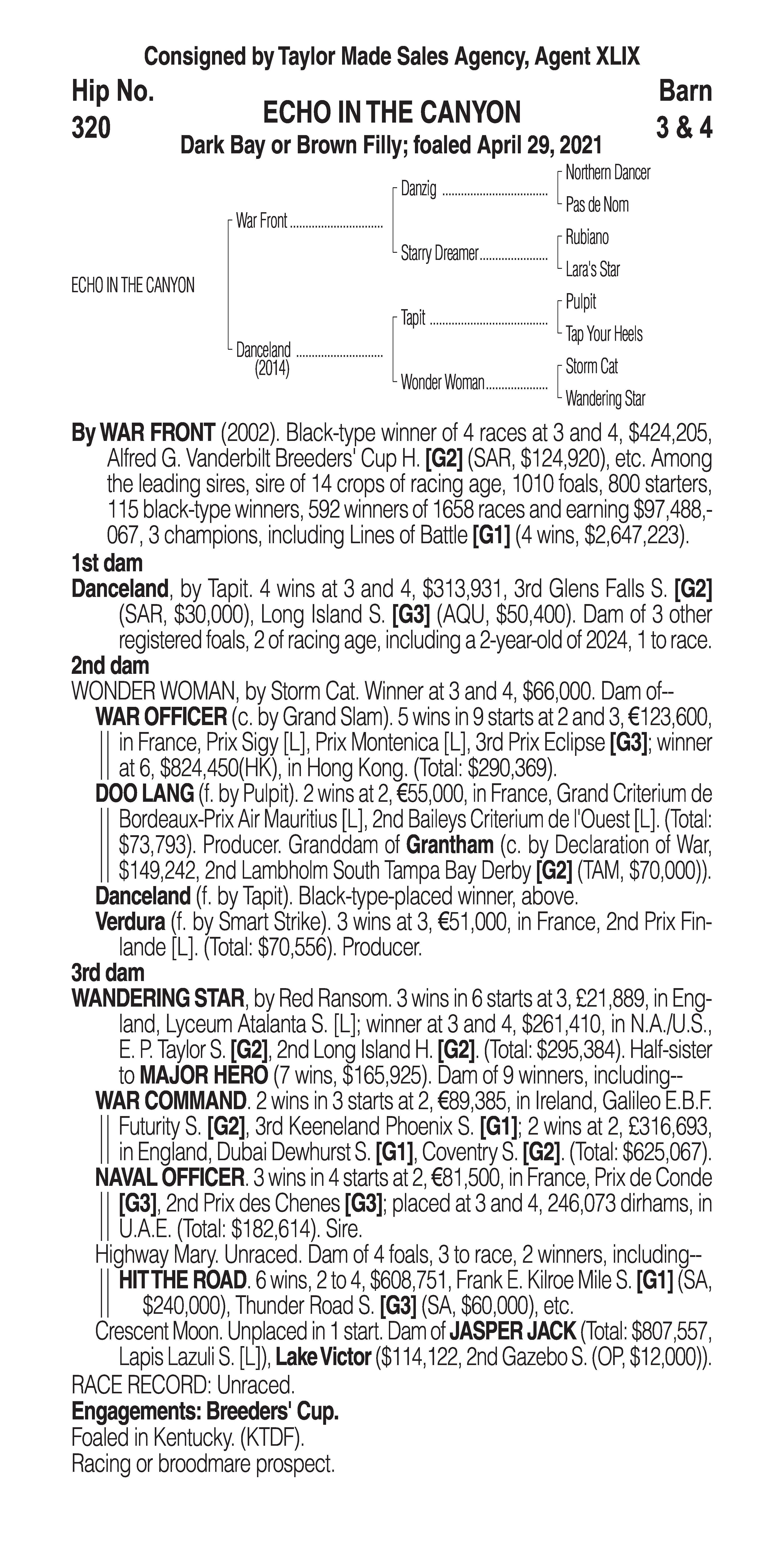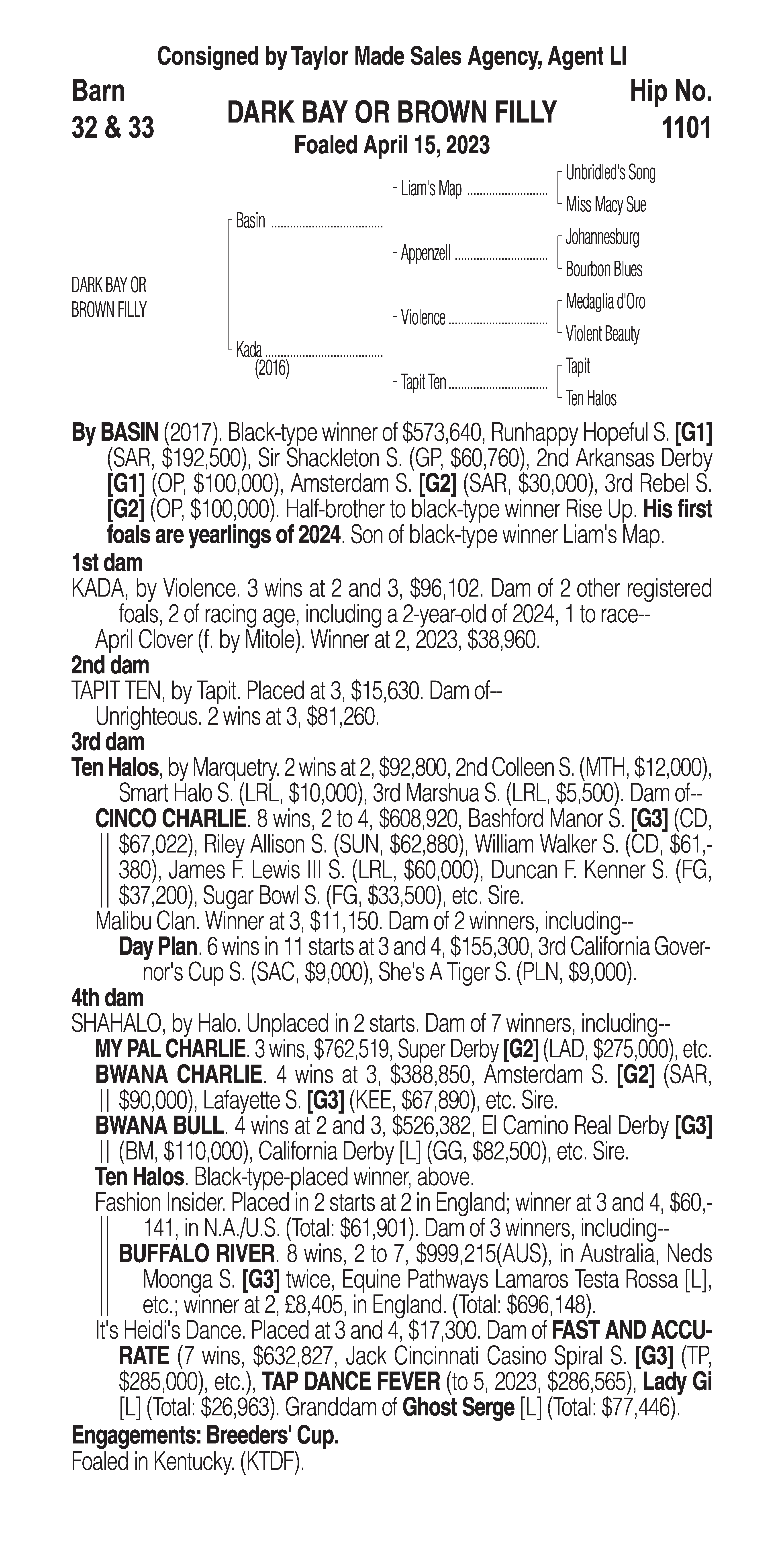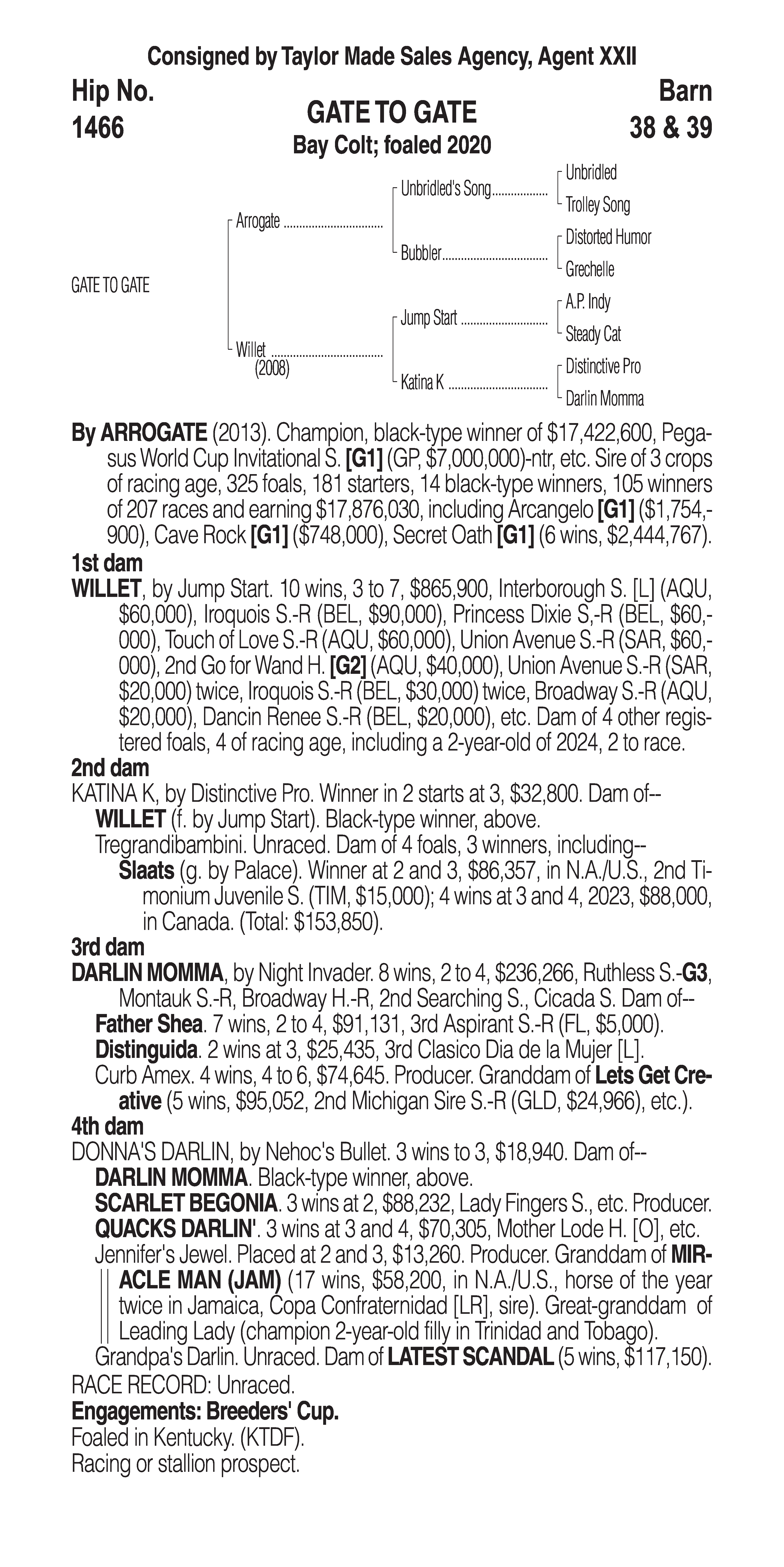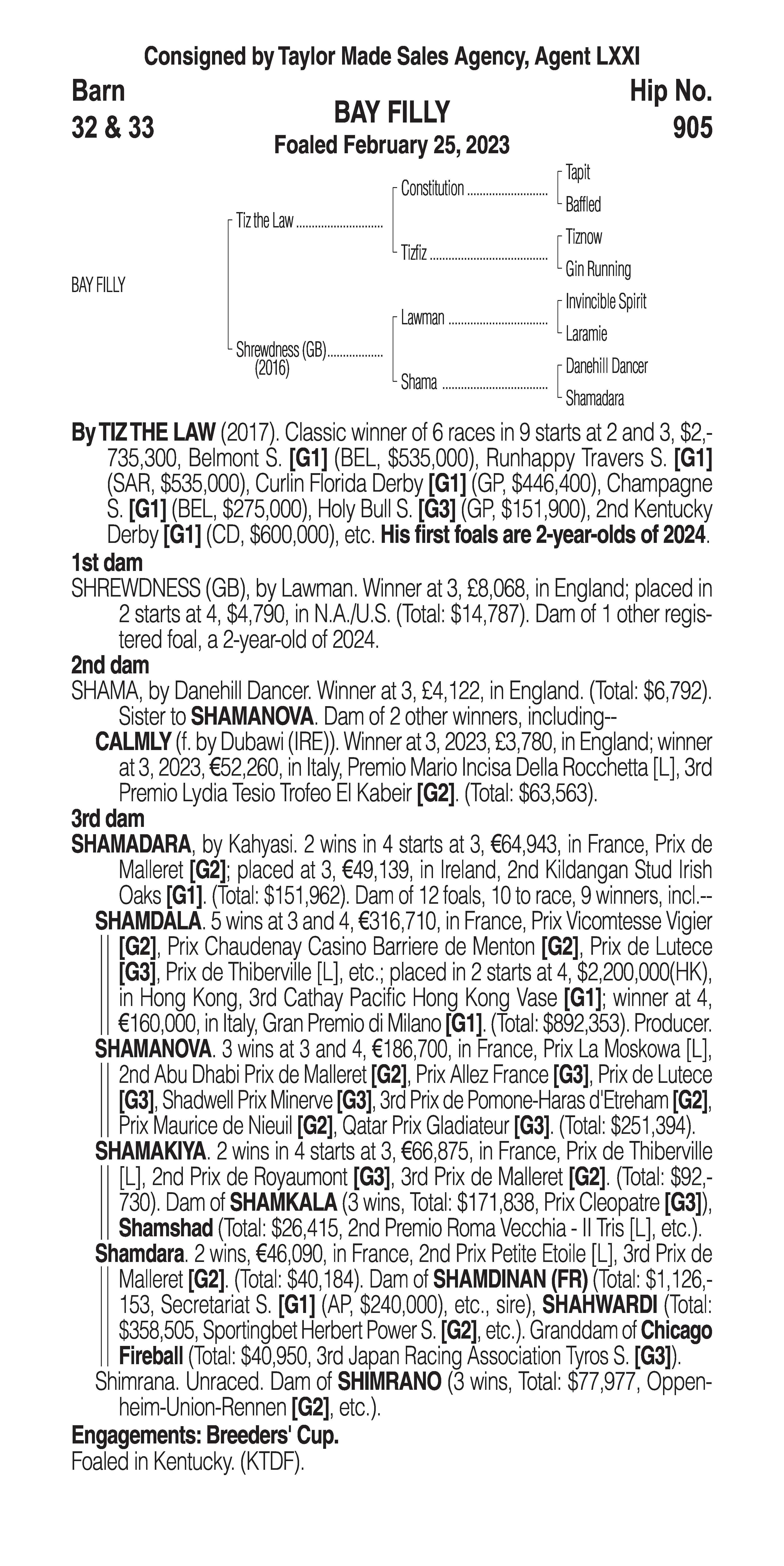 Type: Racing or Broodmare Prospect