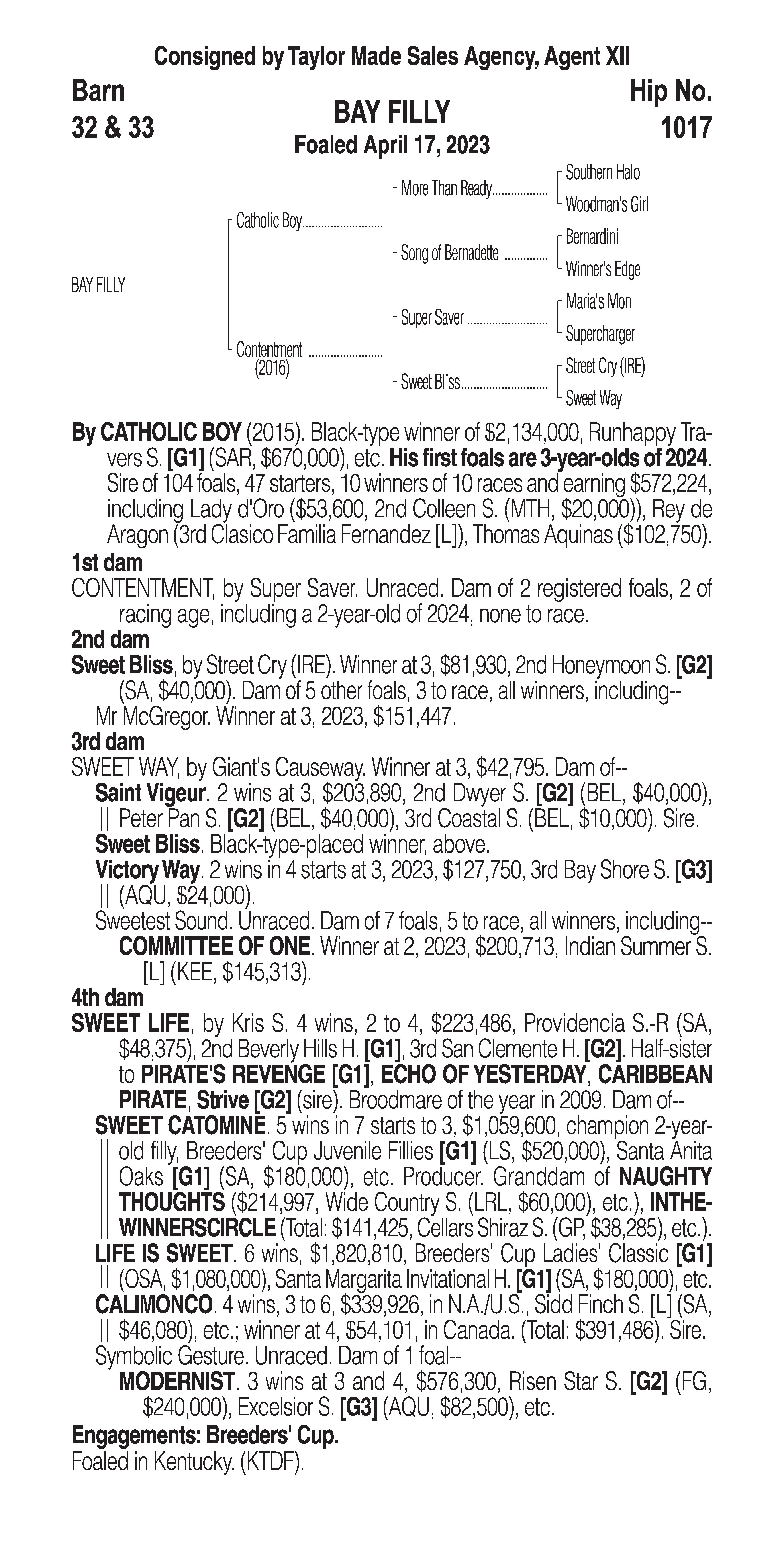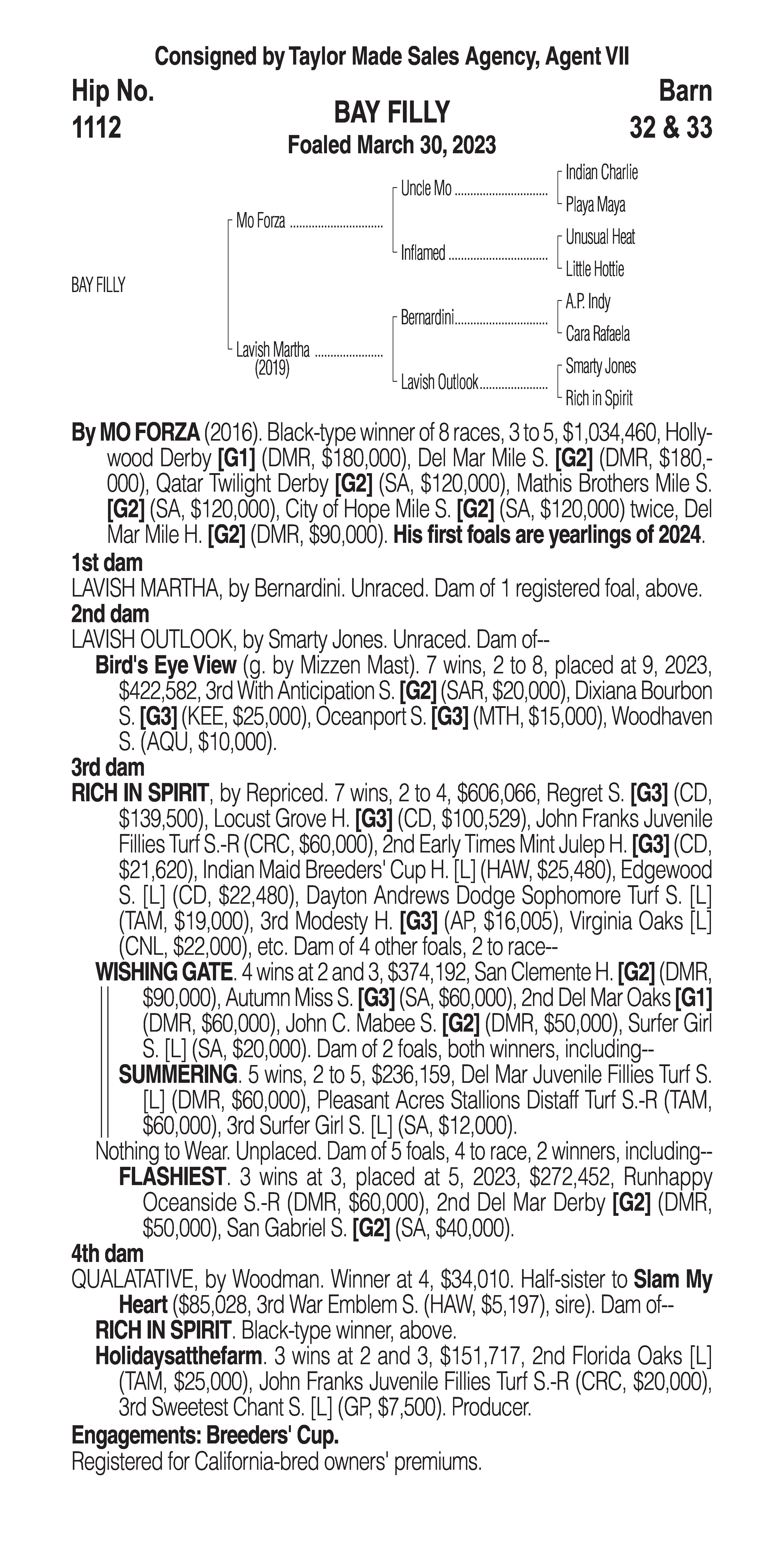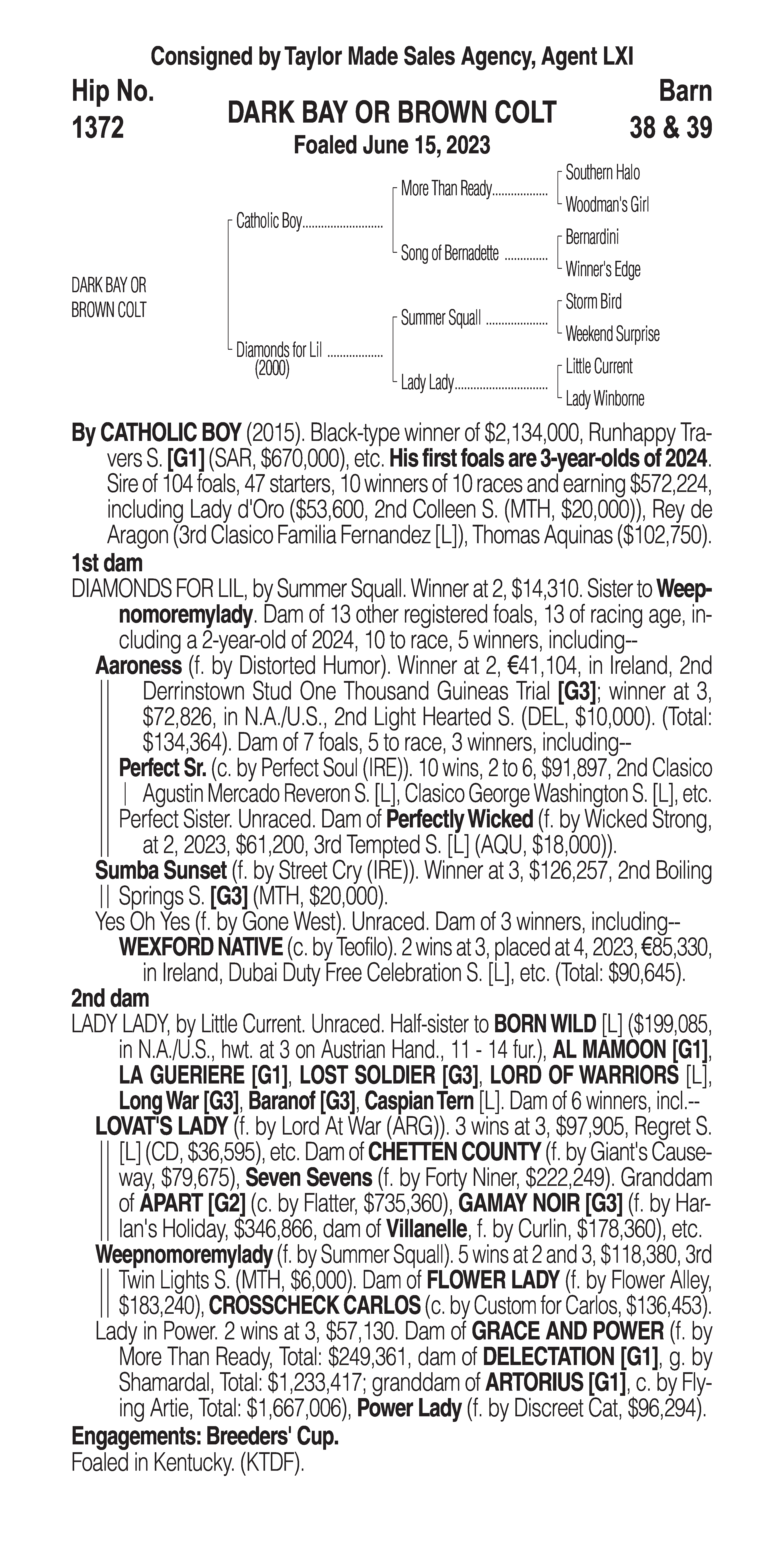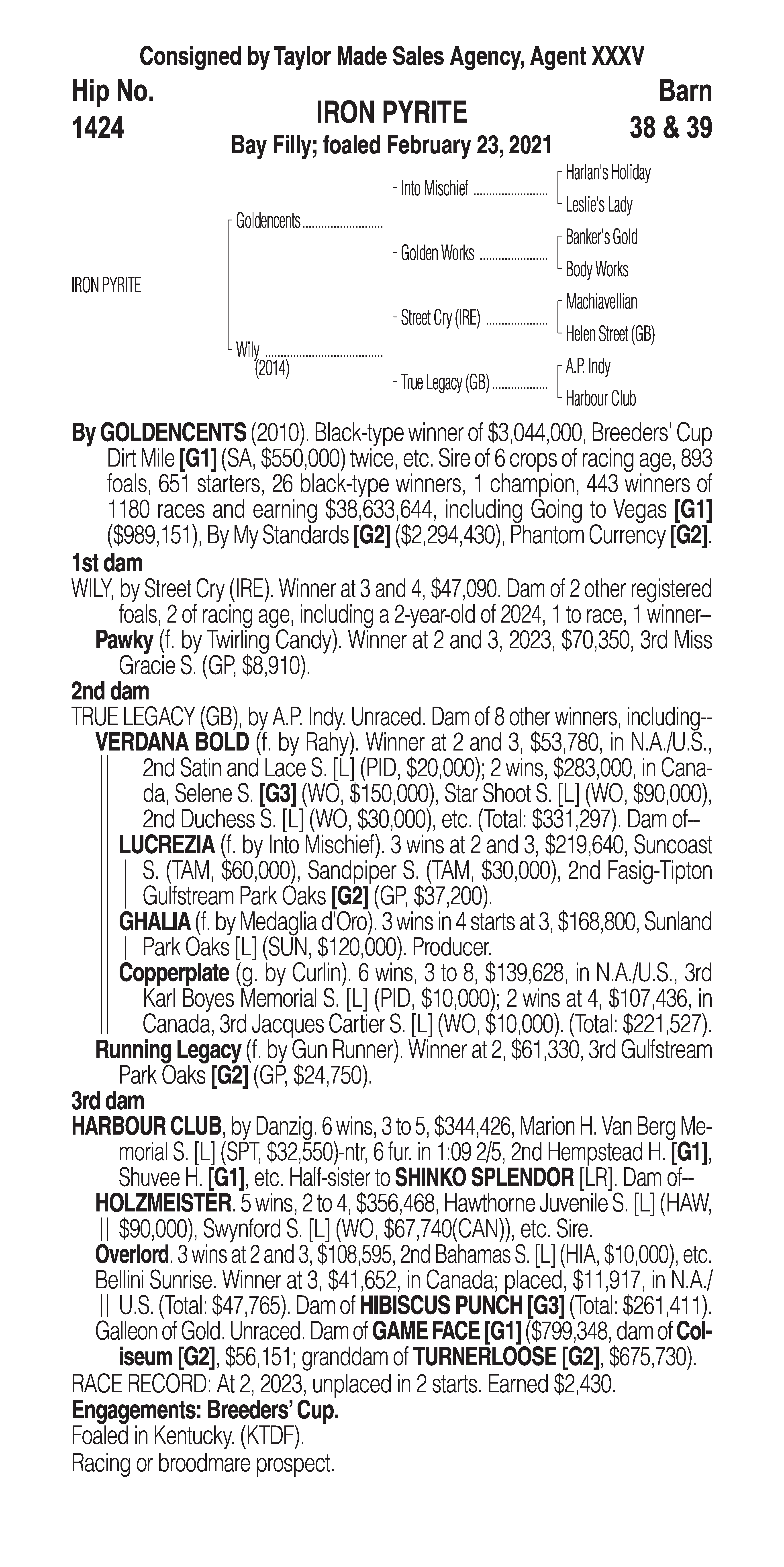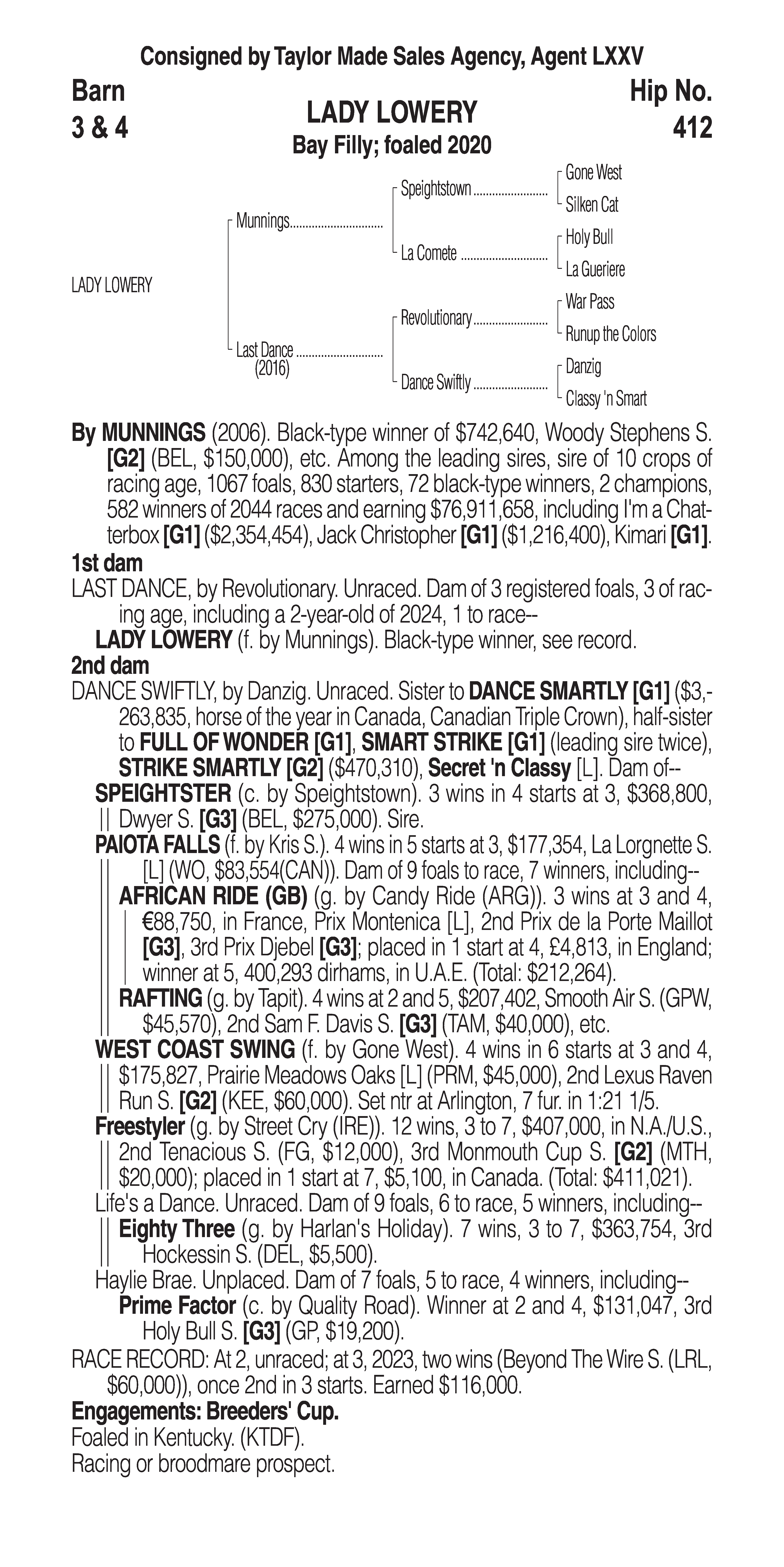 Type: Racing or Broodmare Prospect